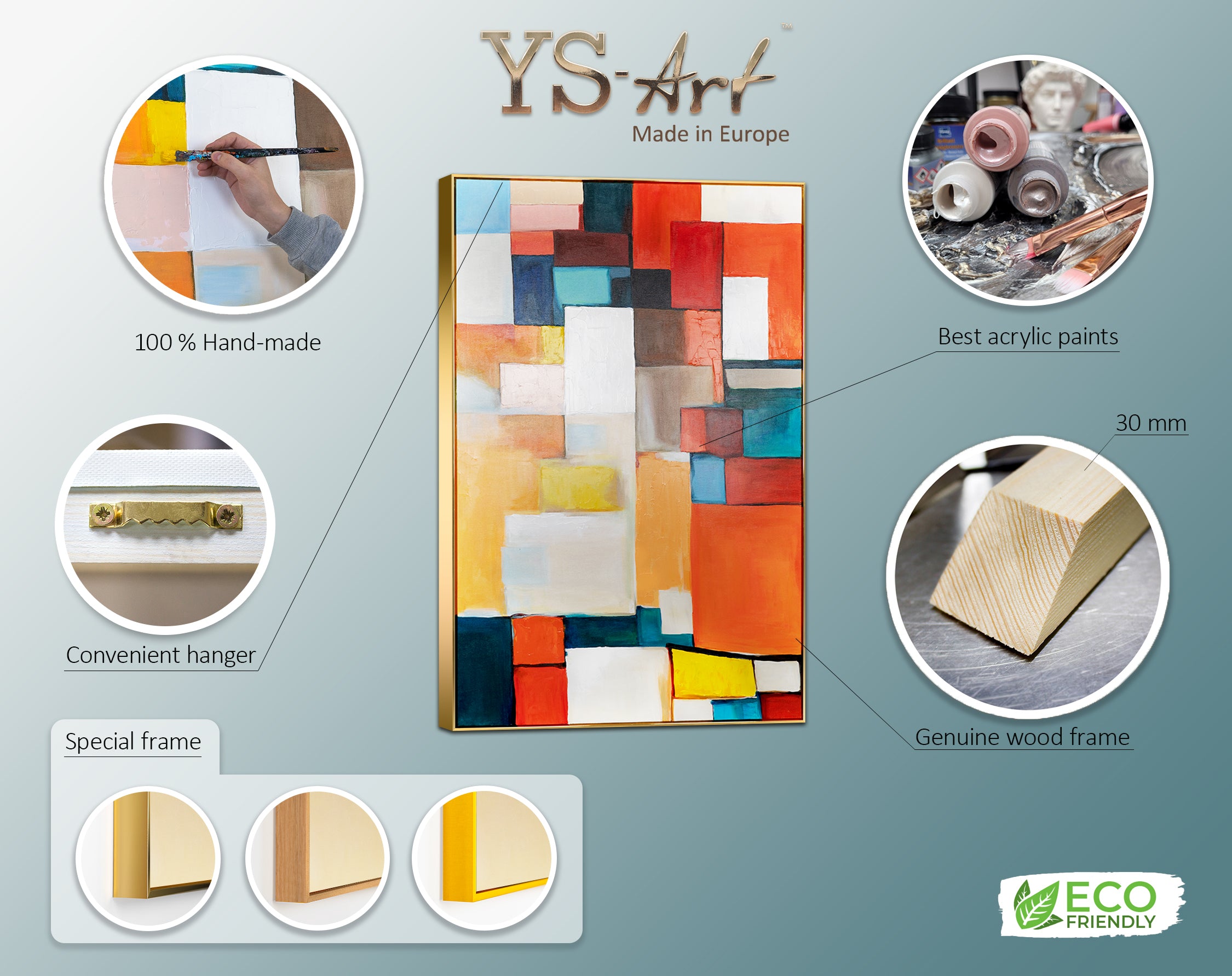 De klare farver og glatte overflader er resultatet af kvalitetsakrylfarver og kunstnerisk præcision. Maleriet leveres med træramme, klar til ophængning, og gør indretningen både levende og stilfuld.
