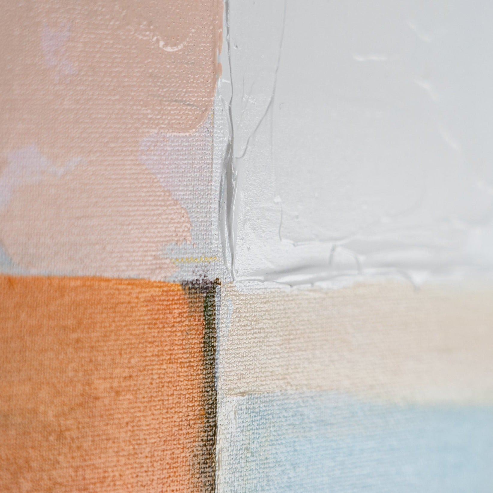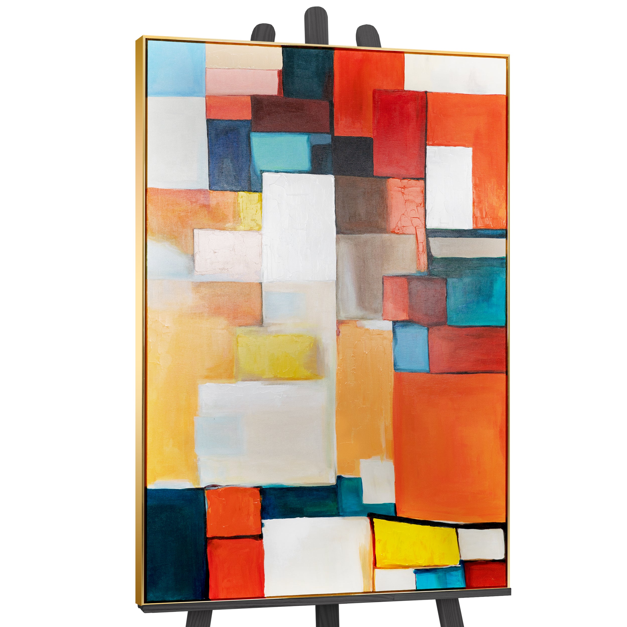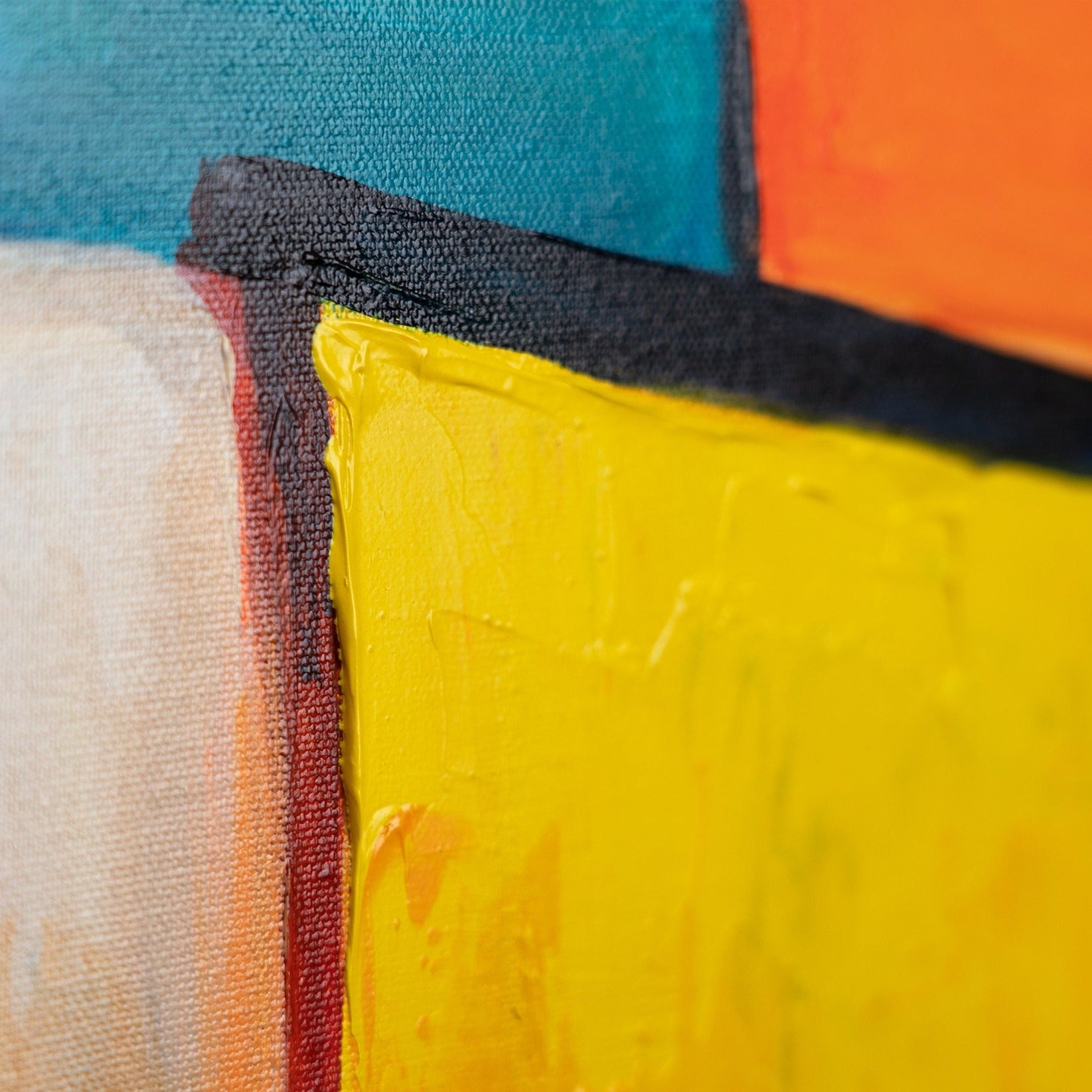 Opdag det perfekte abstrakt maleri til dit hjem med "Geometrisk illusion II", et håndmalet originalværk med stærk visuel appel. Farverige, geometriske felter smelter sammen i et moderne mønster og gør dette akrylmaleri med struktur til et fascinerende midtpunkt over sofaen eller i enhver indretning.