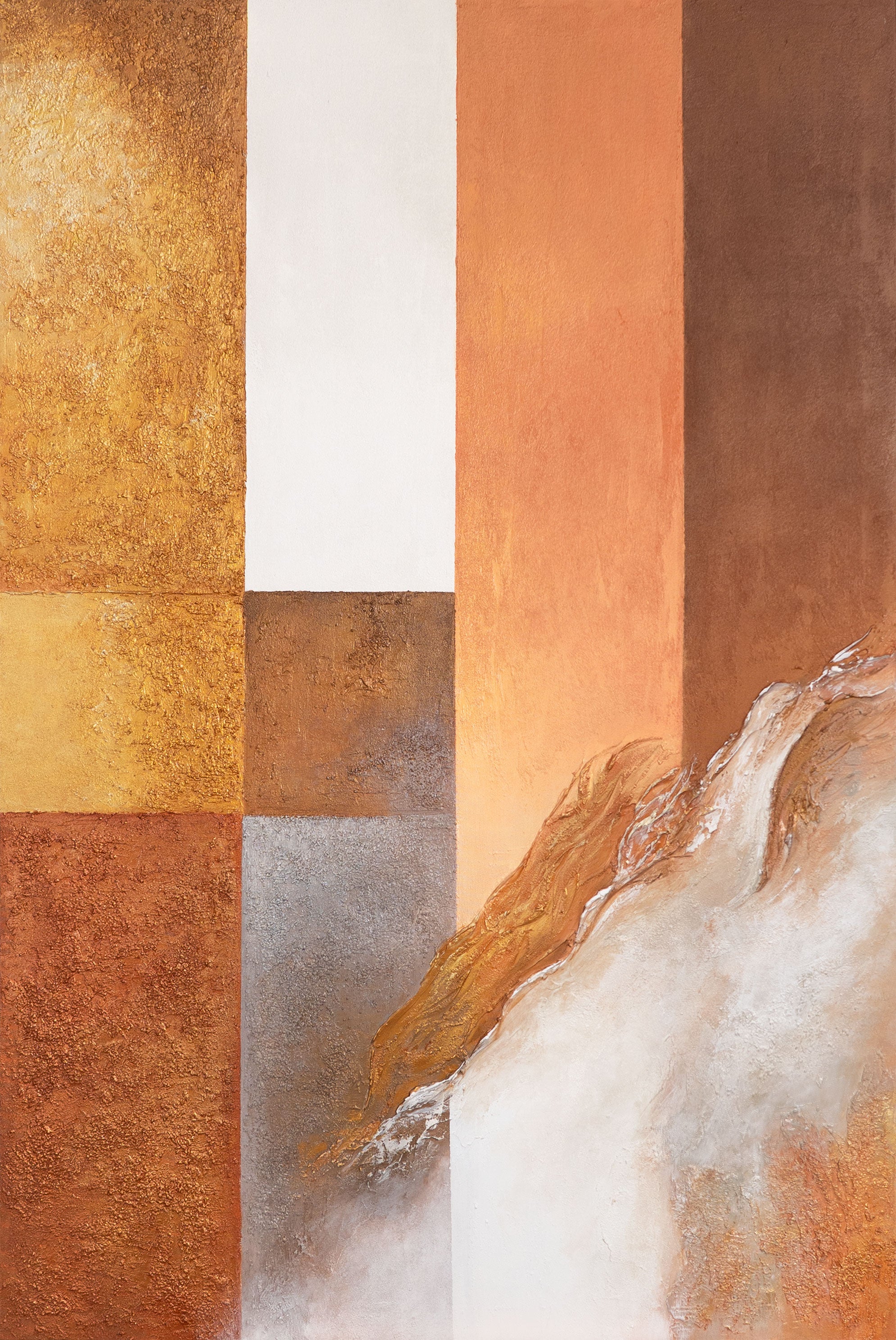 "Former i harmoni" er et håndmalet acrylmaleri, der imponerer med sin kombination af geometriske strukturer og bløde farveovergange. Paletten af varm orange, guld, brun og naturlige nuancer giver værket dybde og en elegant glans. Den strukturerede overflade understreger det kunstneriske udtryk og gør hver flade unik.