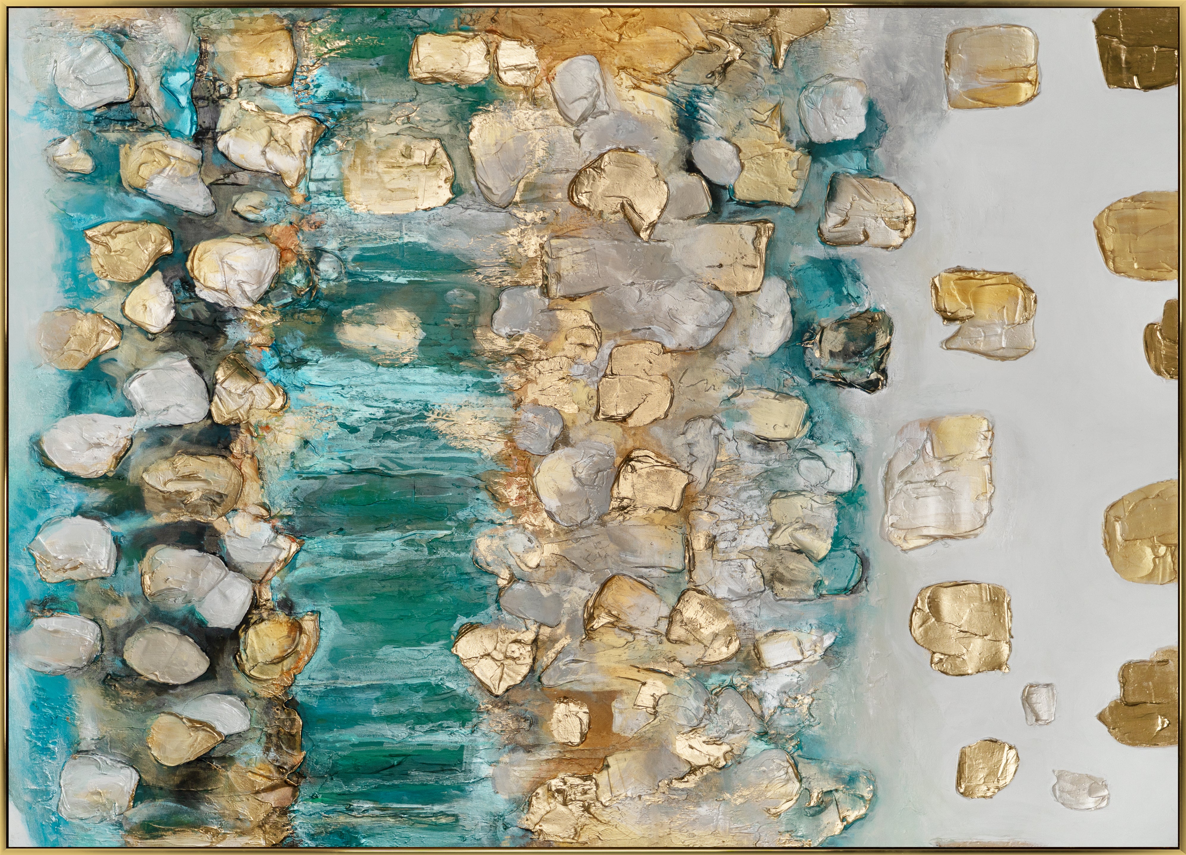 - Tema: Dynamisk komposition i turkis, hvid og guld