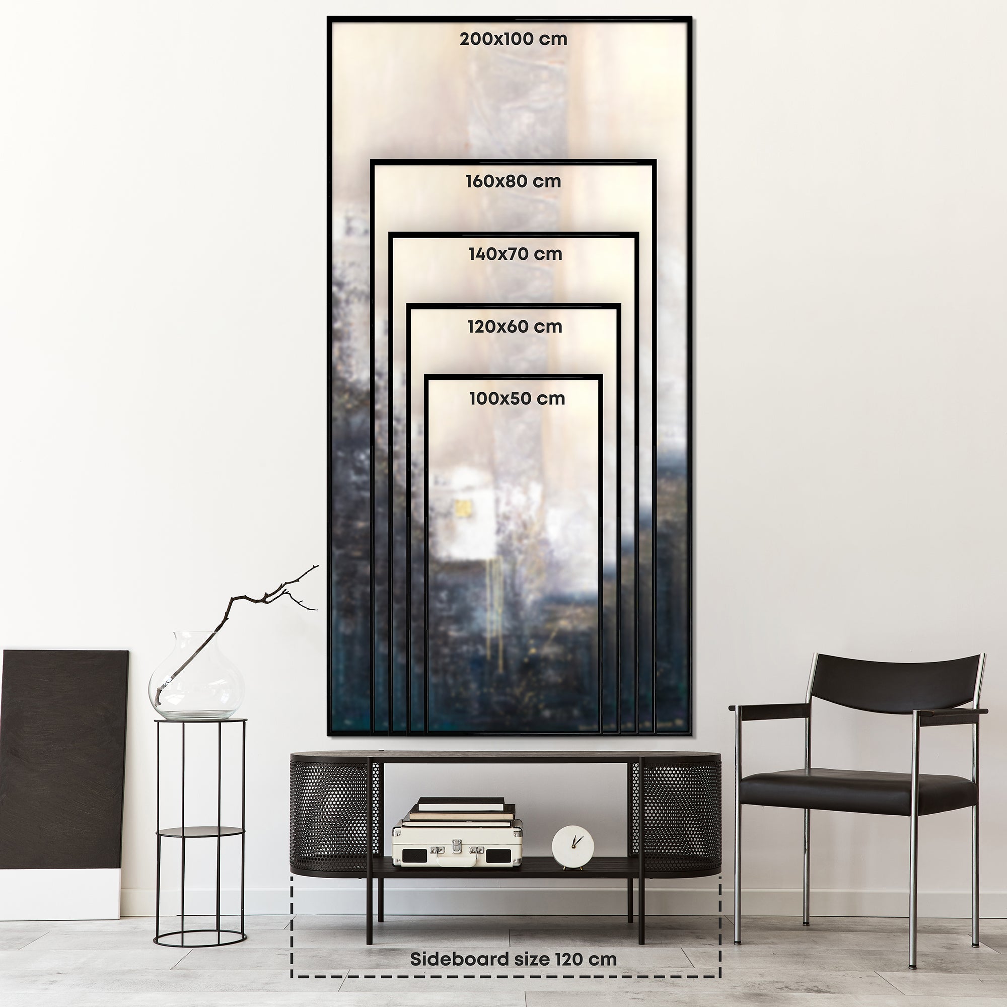 Farvebalancen og teksturspillet i dette vertikale maleri er en fremragende kombination. En abstrakt maleri i denne stil vil klæde ethvert moderne interiør, uanset om det er loft, minimalisme eller klassisk. Anvendelsen af bladguld tilfører værket raffinement og luksus.