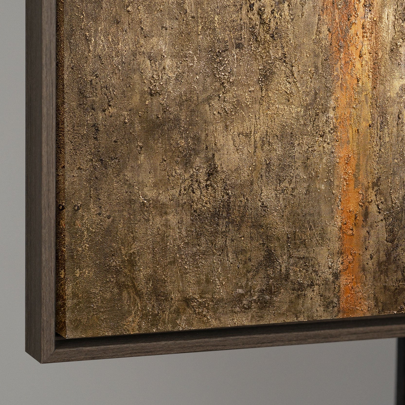 Das handgemalte Gemälde auf Leinwand ist in einem grauen Rahmen präsentiert und eignet sich ideal als moderne Wandkunst für Wohnzimmer, Büro oder repräsentative Räume. Die strukturierte Oberfläche sorgt für eine hochwertige, ruhige Ausstrahlung und fügt sich harmonisch in zeitgenössische Interieurs ein.