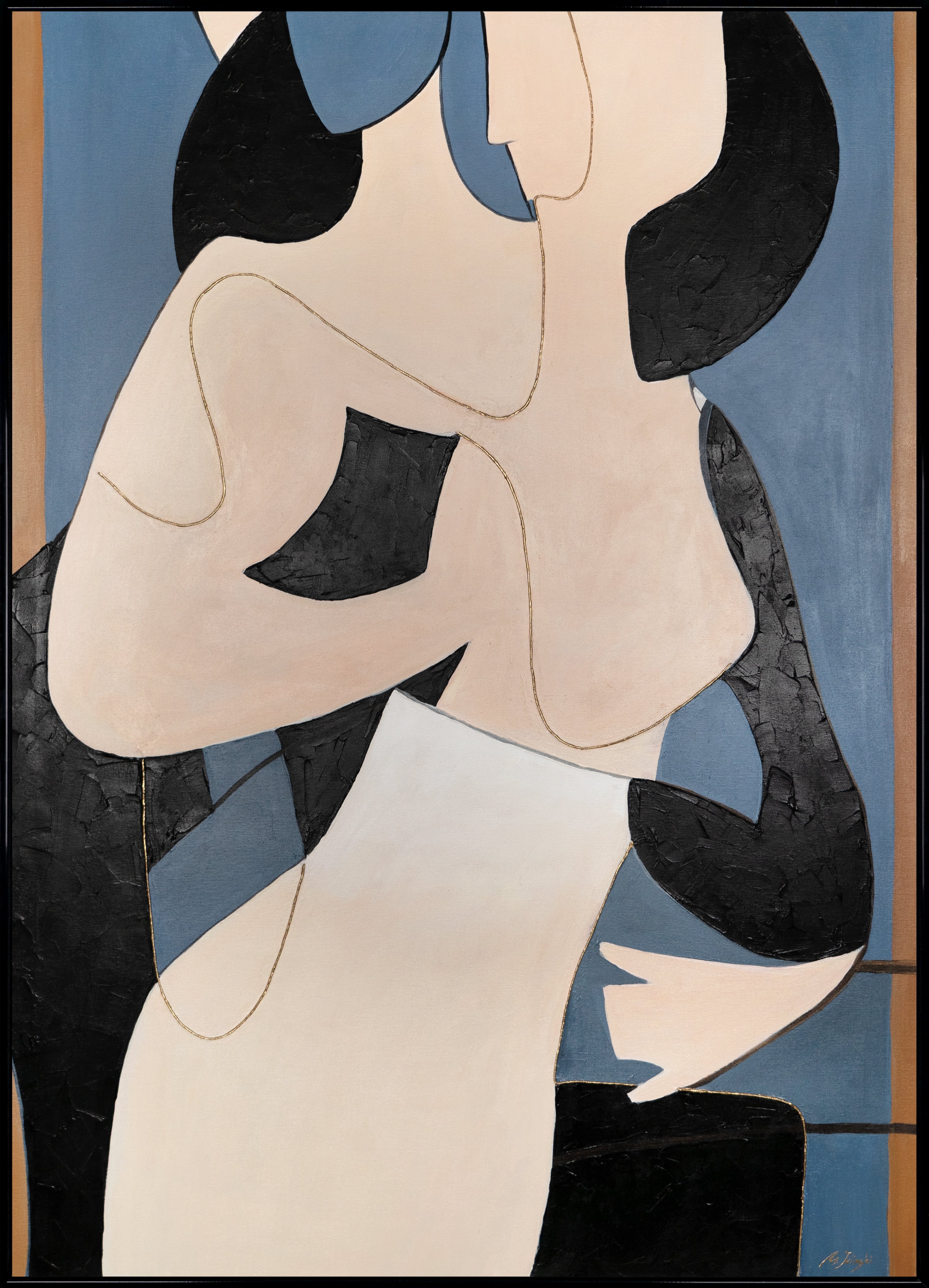 Opdag skønheden i moderne kunst med dette eksklusive, håndmalede billede på lærred abstrakt. Dette unikke værk er skabt af en talentfuld kunstner og viser to figurer i et fascinerende abstrakt kunst-design, der løfter dit interiør til et nyt niveau af design. Maleriet måler 60×90 cm og er udført på højkvalitets lærred, der sikrer lang holdbarhed.