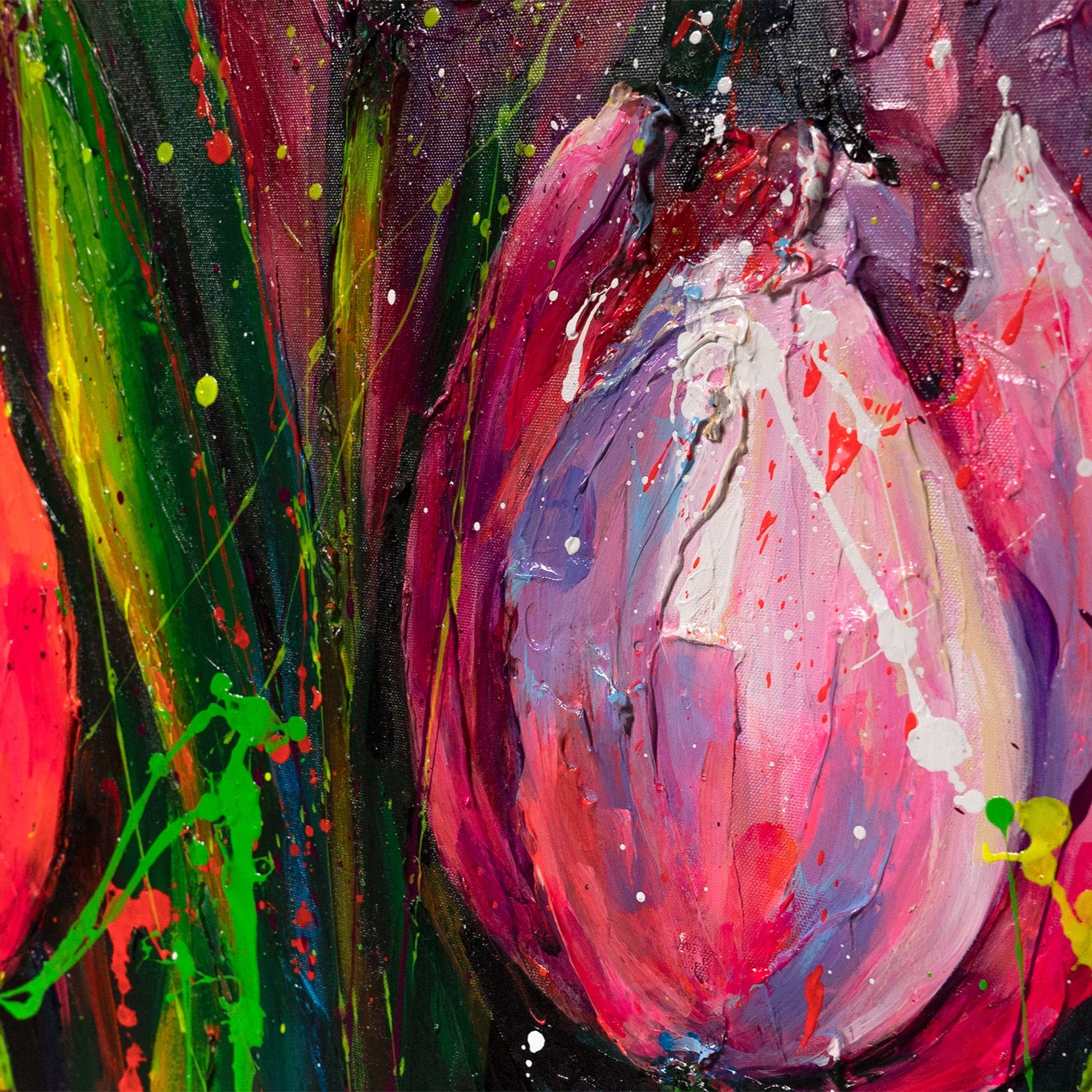• Tulpenblüte in Pink moderne Acrylmalerei Nahaufnahme