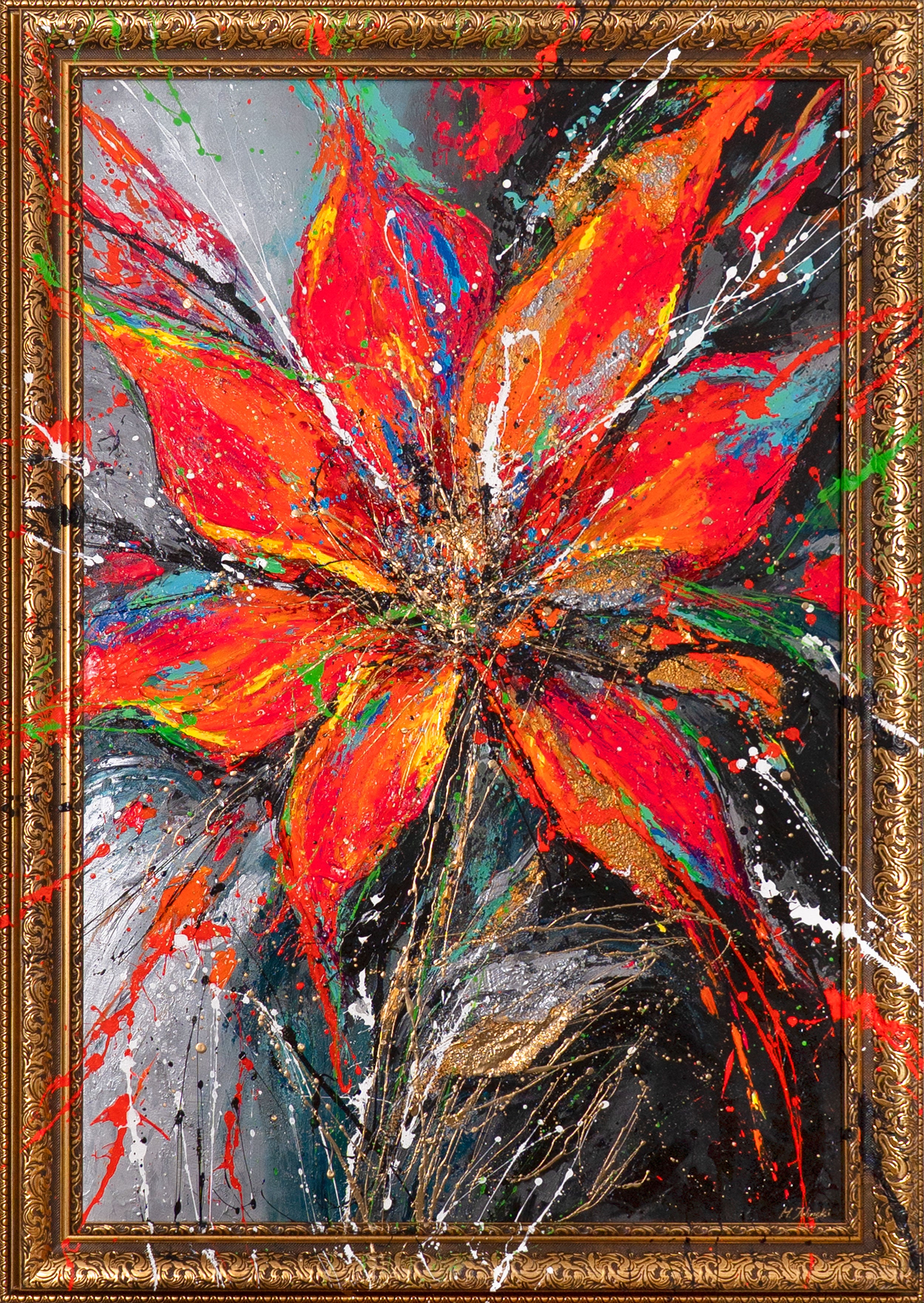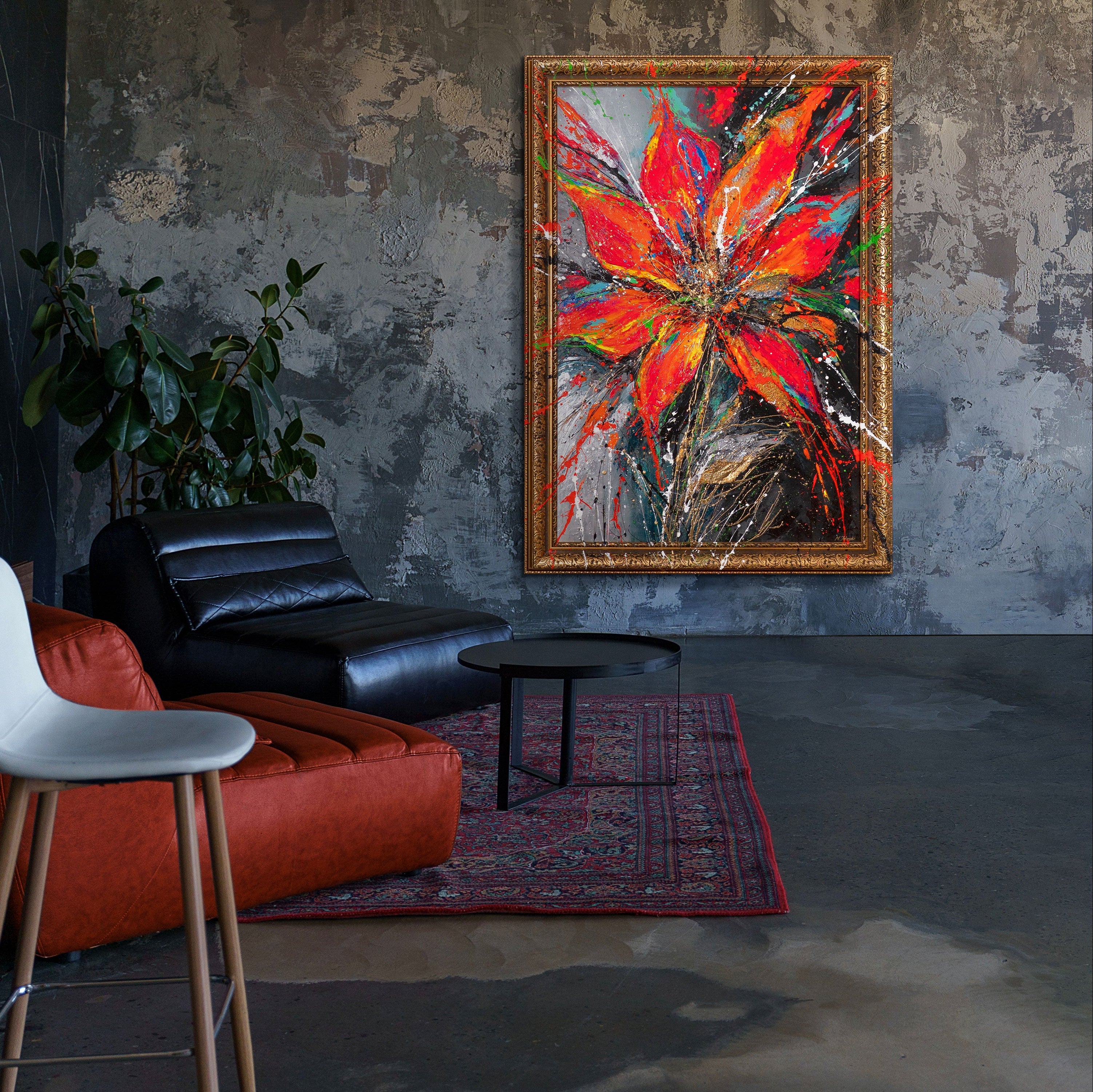 • Rote Blüte abstrakte Acrylmalerei handgemaltes Leinwandbild