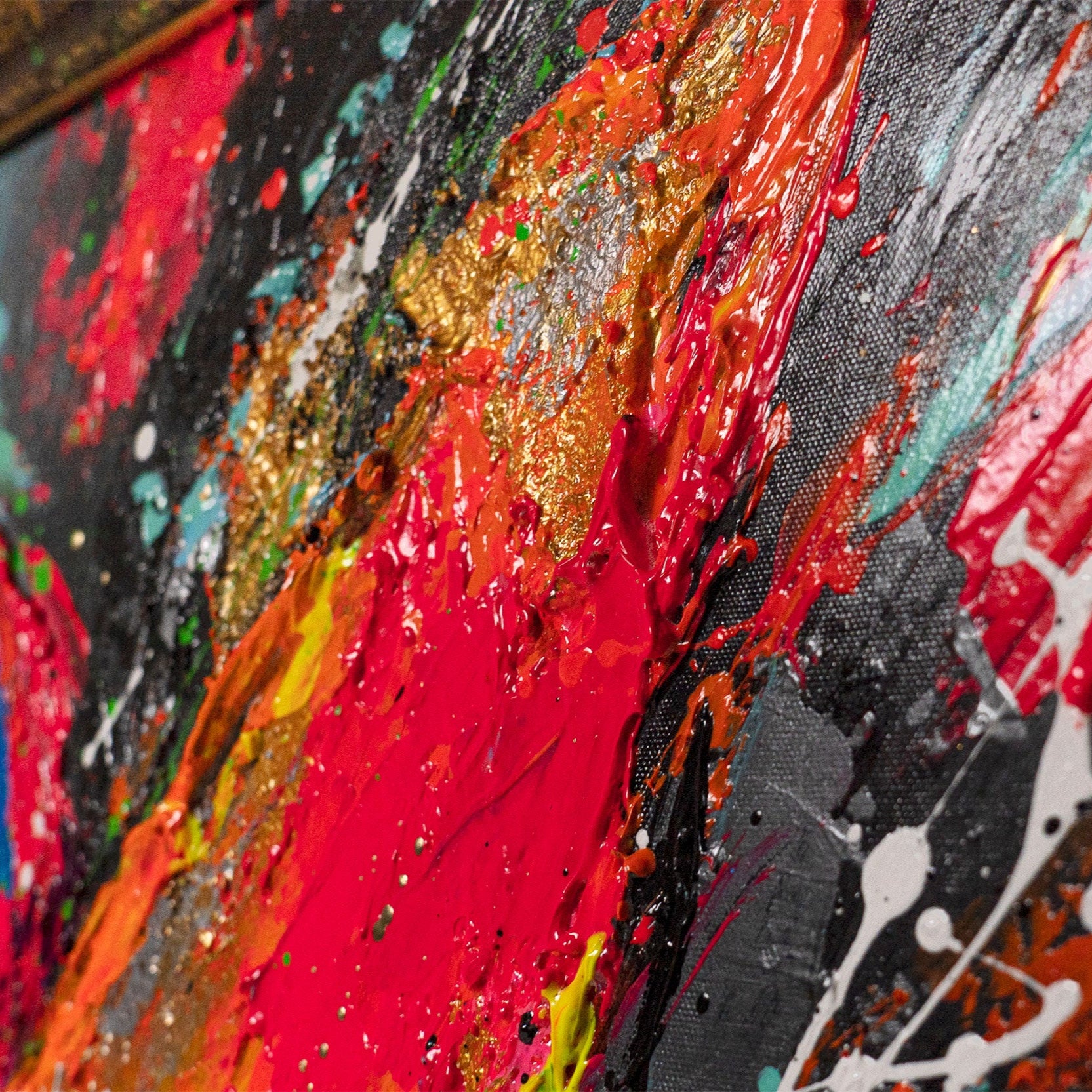 • Goldrahmen mit Farbe handgemalte Acrylmalerei Nahansicht