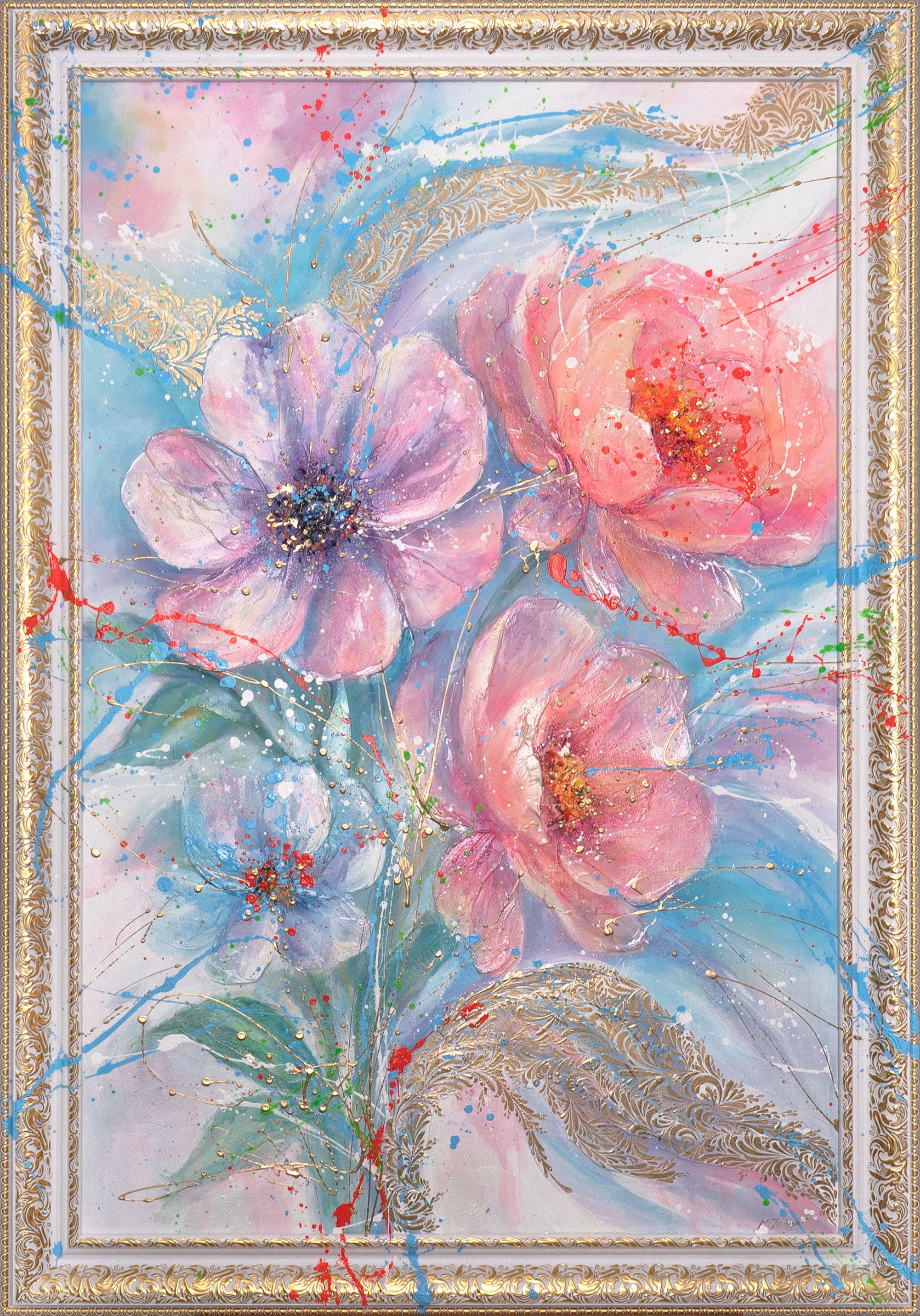 • Blumenmotiv in Pastell handgemaltes Leinwandbild Atelier