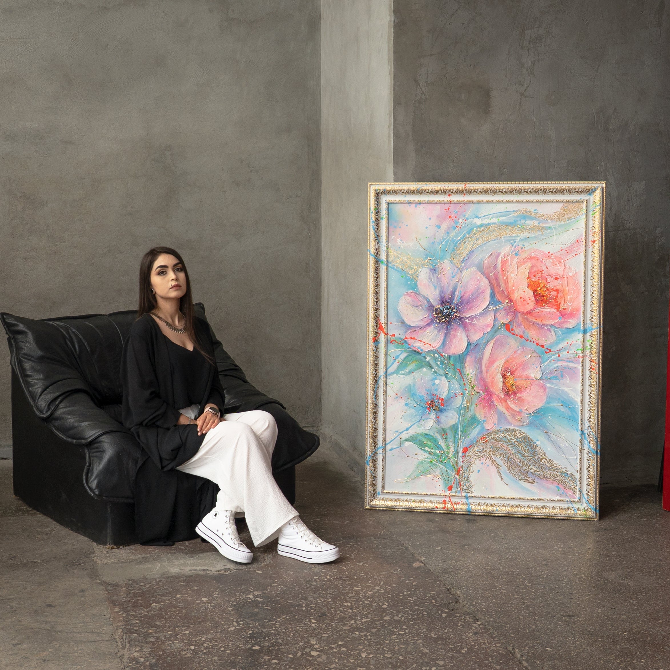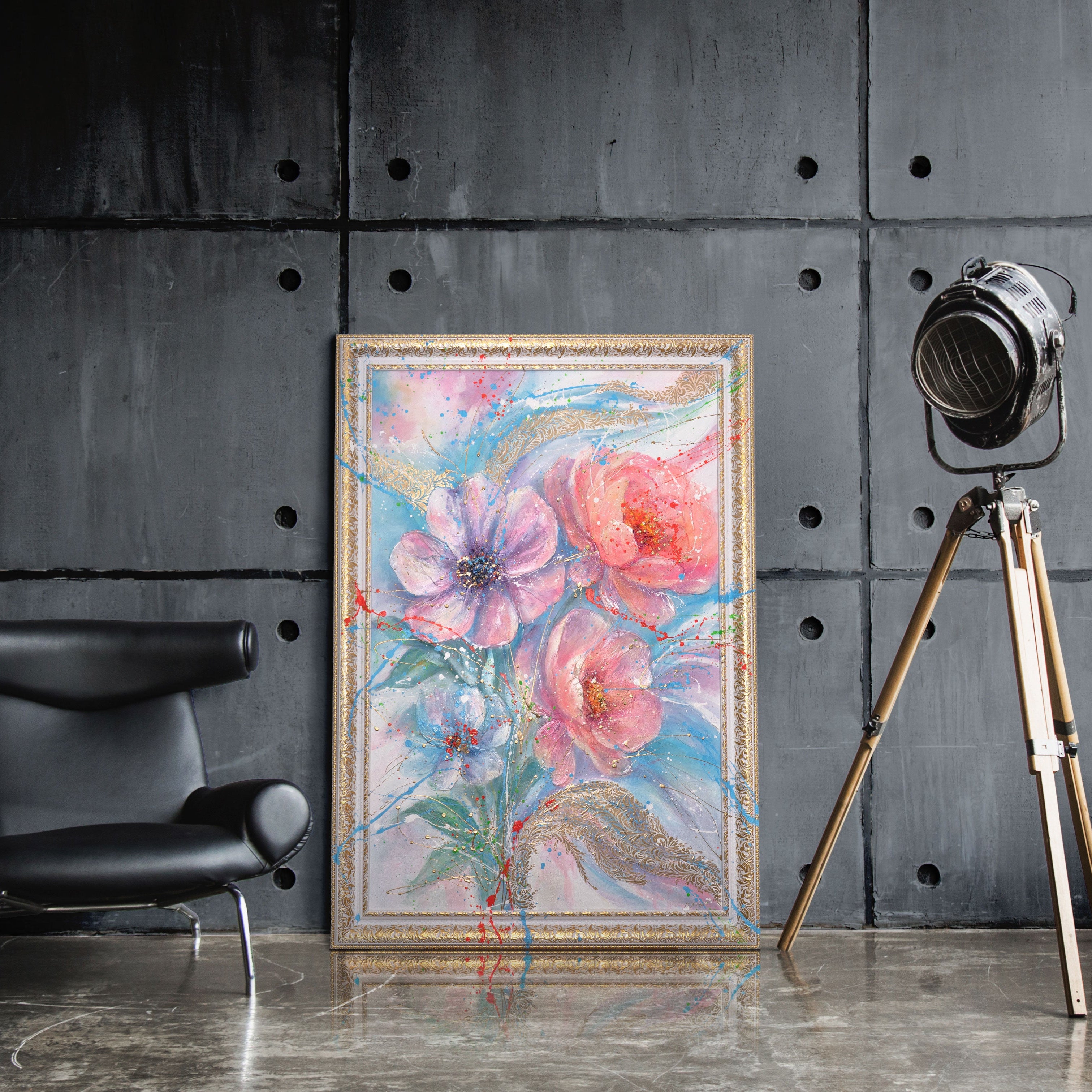 • Handgemaltes Acrylbild Blumen Kunst im modernen Interieur