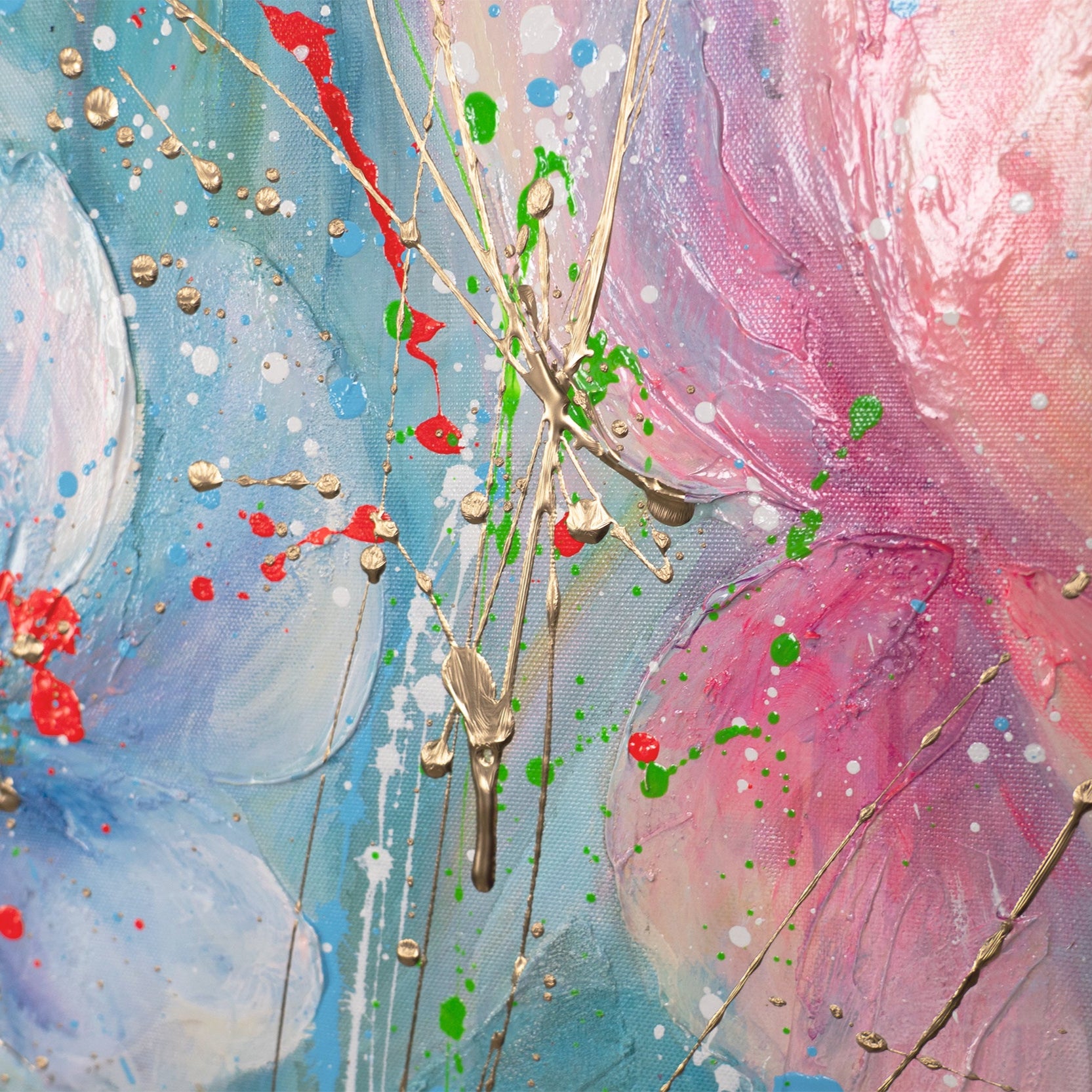 • Pastellfarben Blau Rosa abstrakte Blumenmalerei Detail