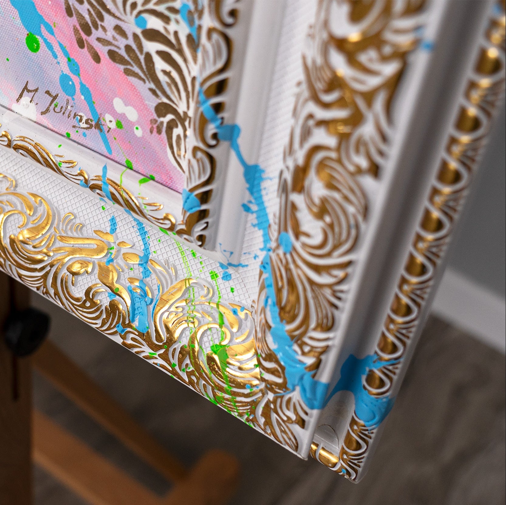 • Goldrahmen mit Struktur handgemalte Wandkunst Nahansicht