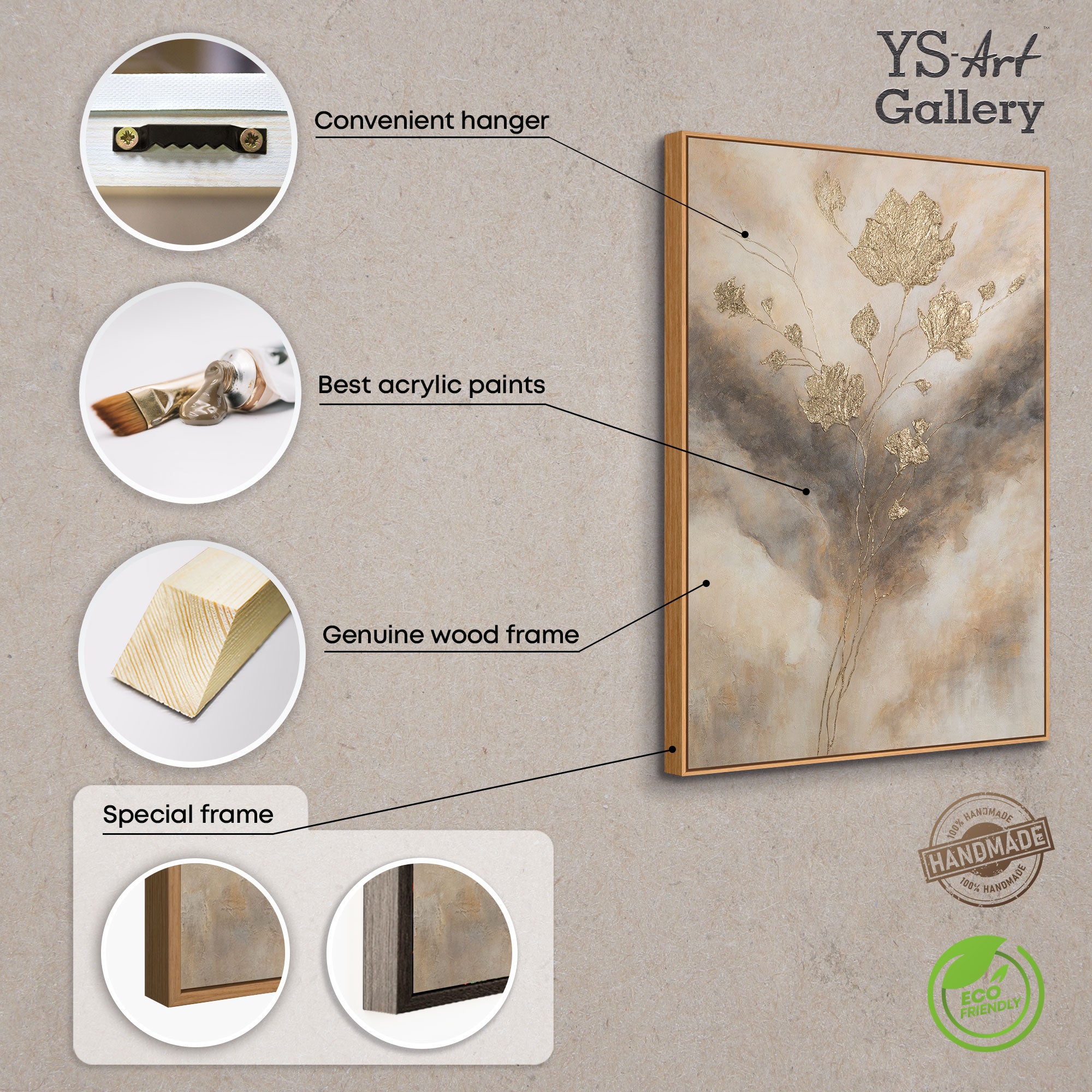 • Handgemalte Acrylmalerei mit Goldstruktur