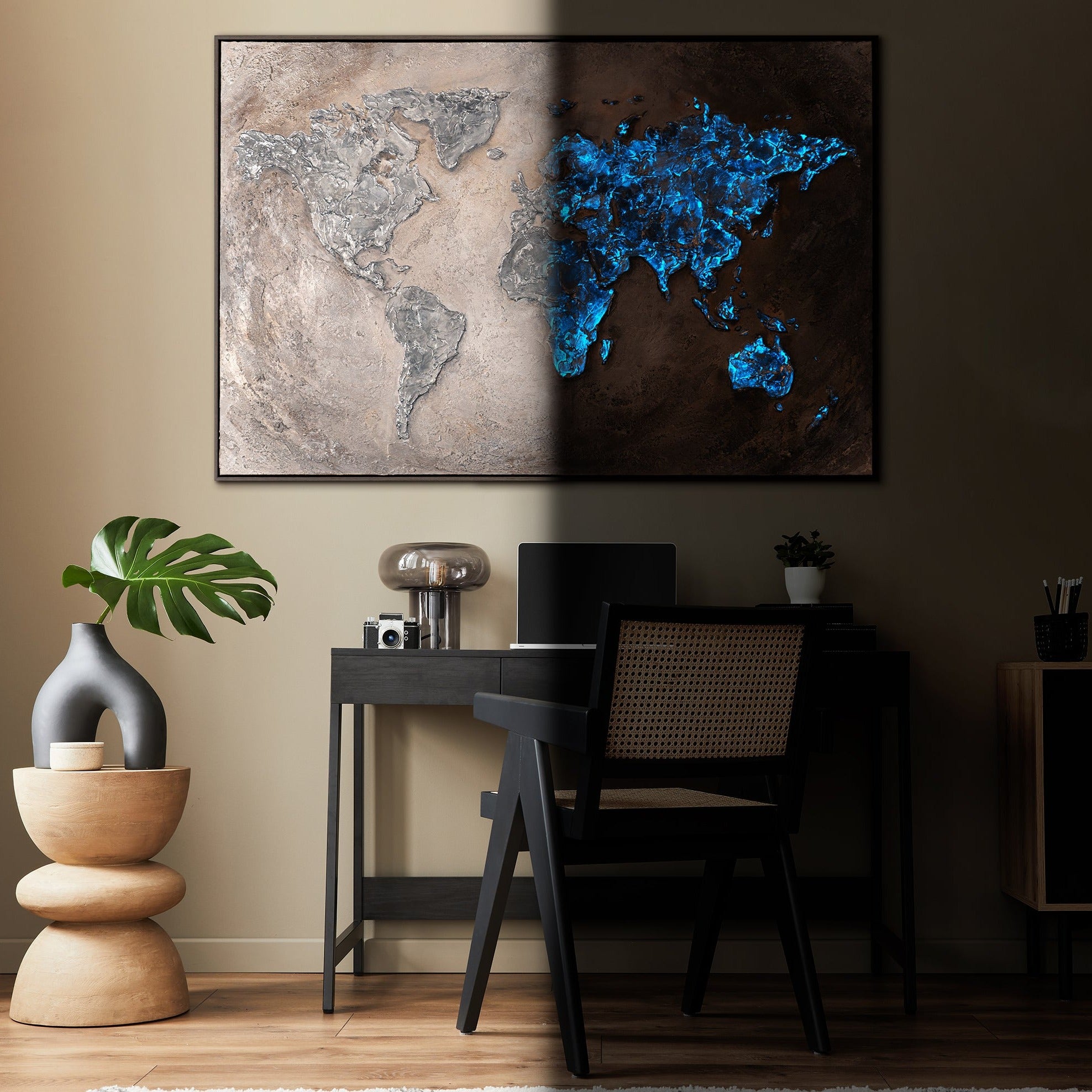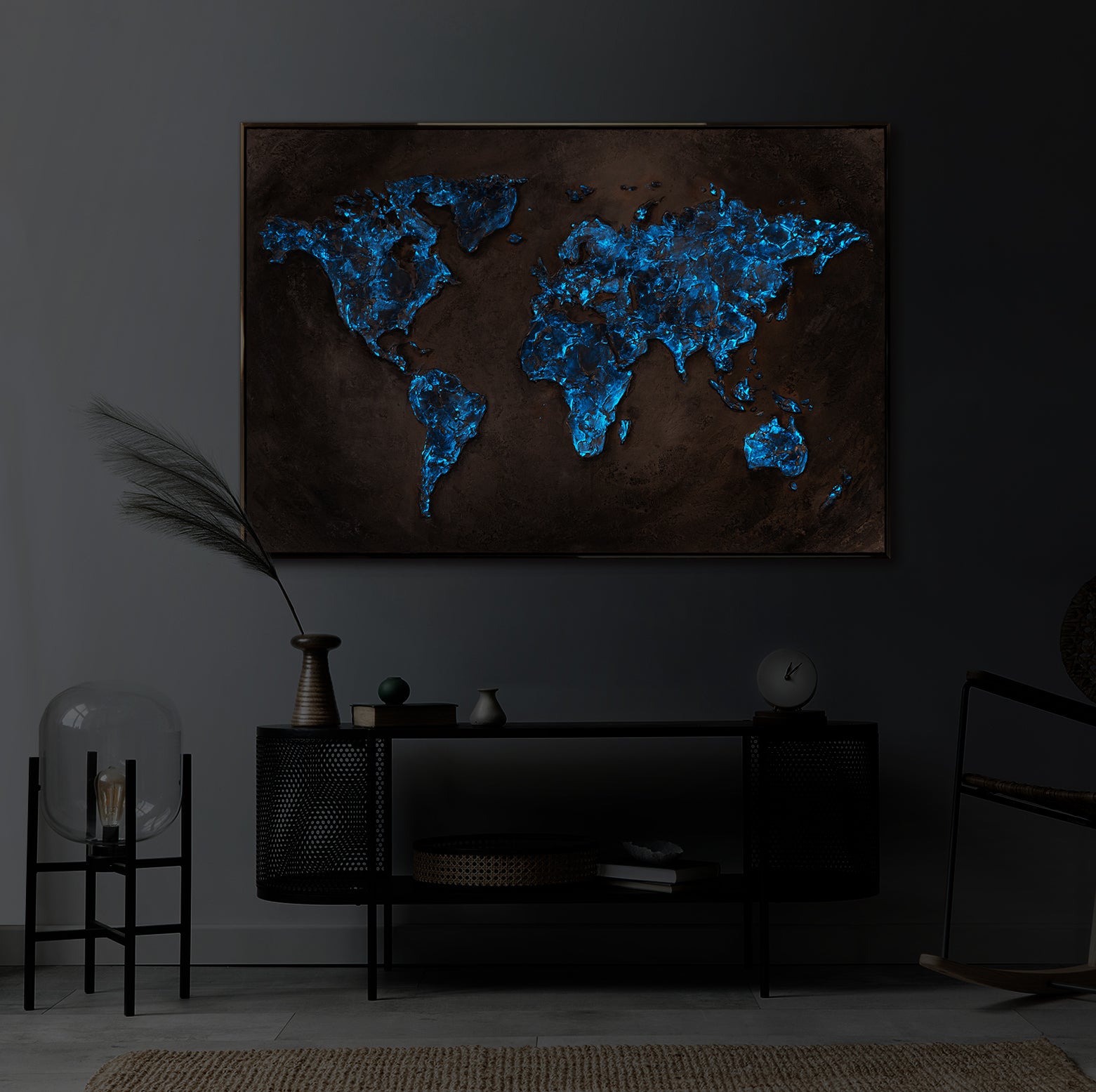 Udforsk vores fascinerende udvalg af lysende malerier! Disse phosphorescerende kunstværker, monteret på blindrammer og med elegante rammer, tilføjer et magisk præg til dit interiør.