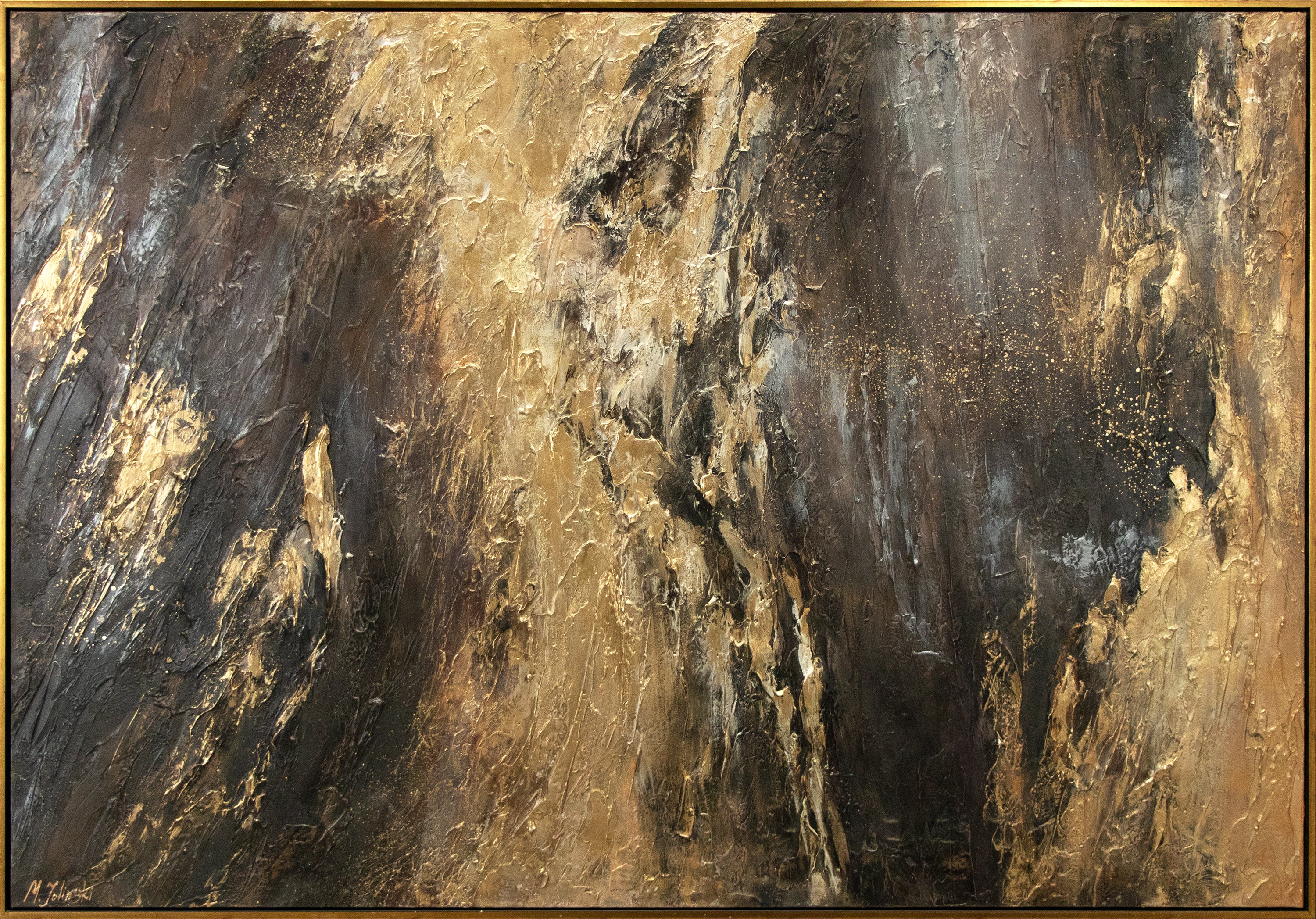 Håndmalede billeder med bladguld i ramme "Spejlinger III".