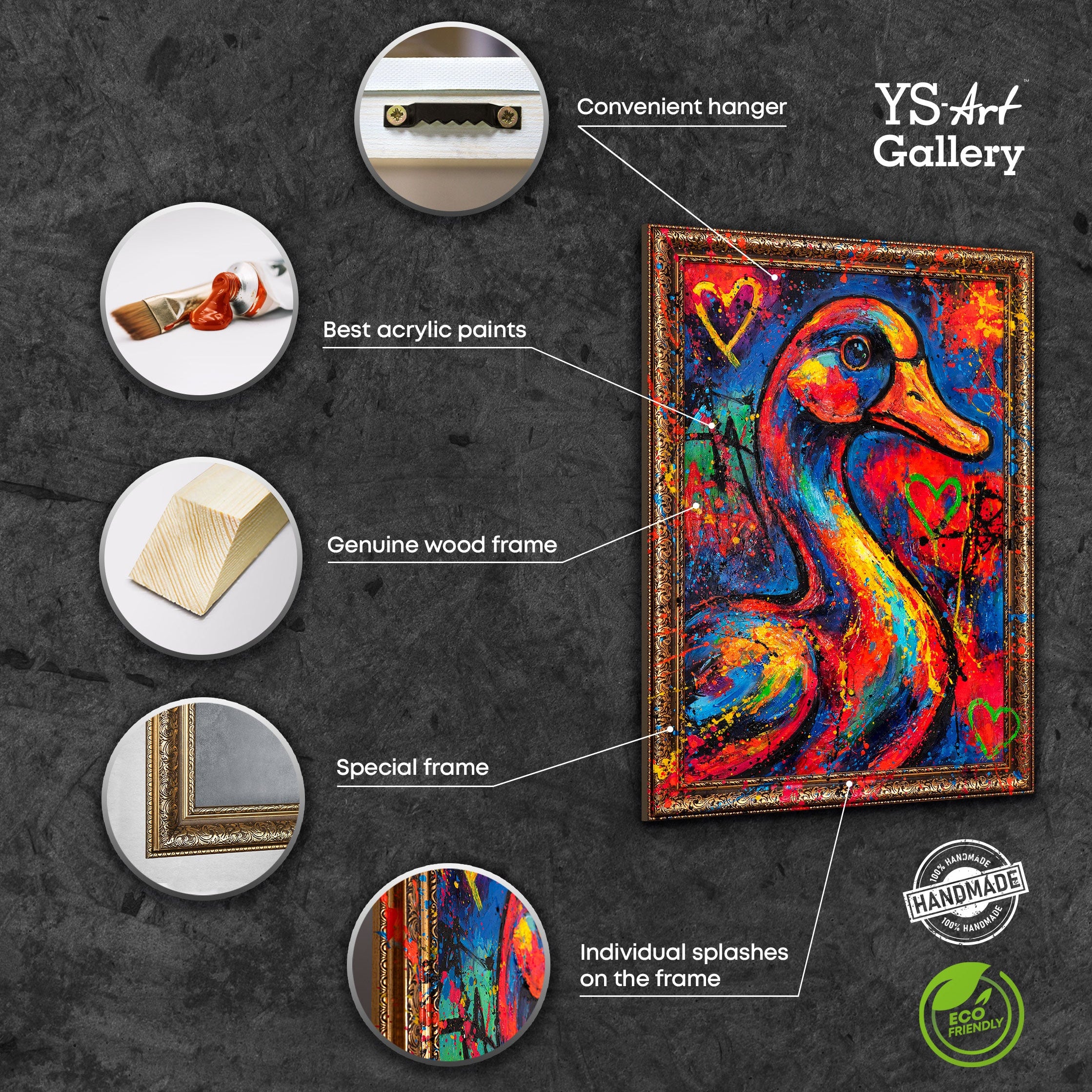 Denne malerisamling er alt andet end masseproduktion: Hvert værk er 100 % håndlavet og helt unikt. Der findes ikke et identisk billede på jorden, da hvert maleri skabes individuelt til køberen.