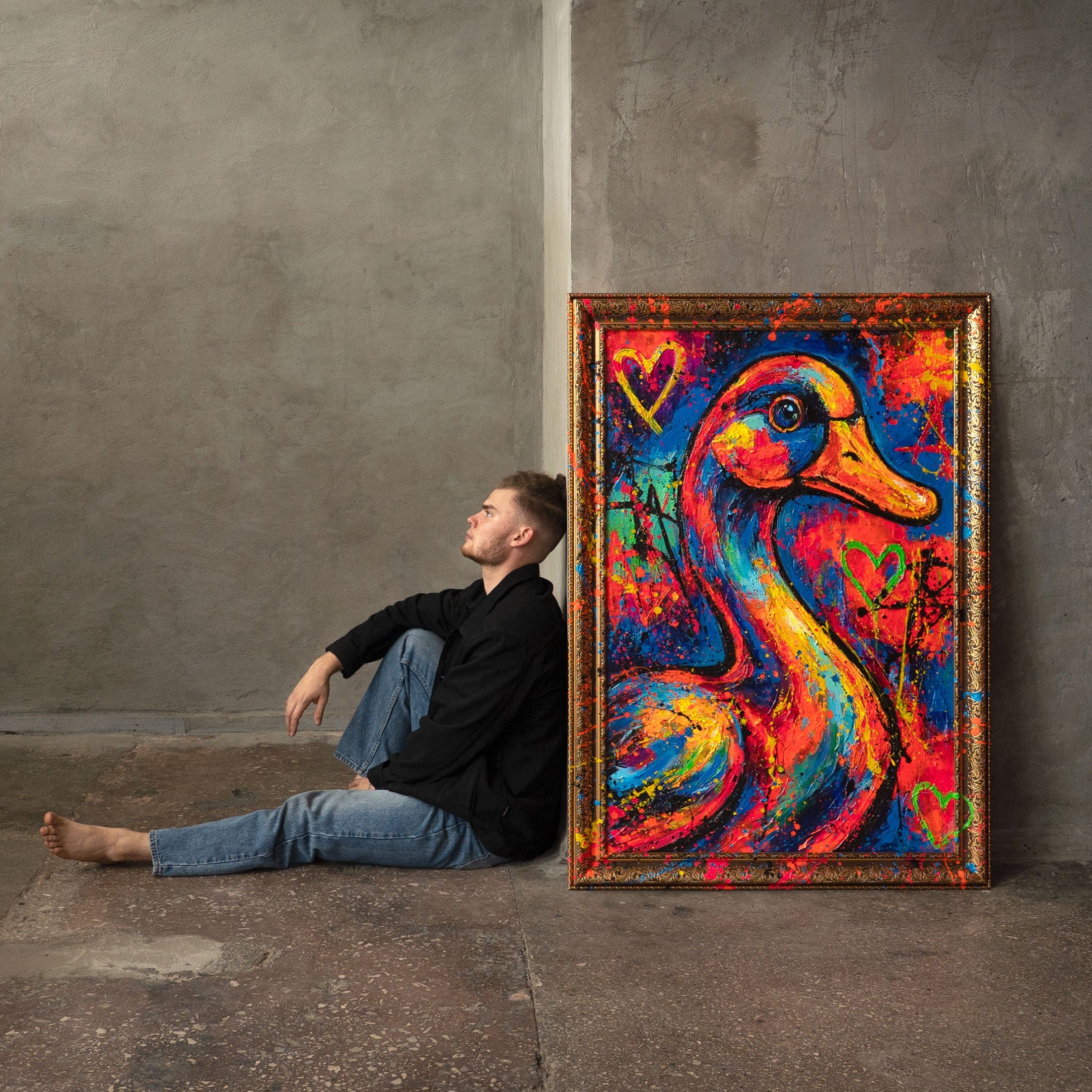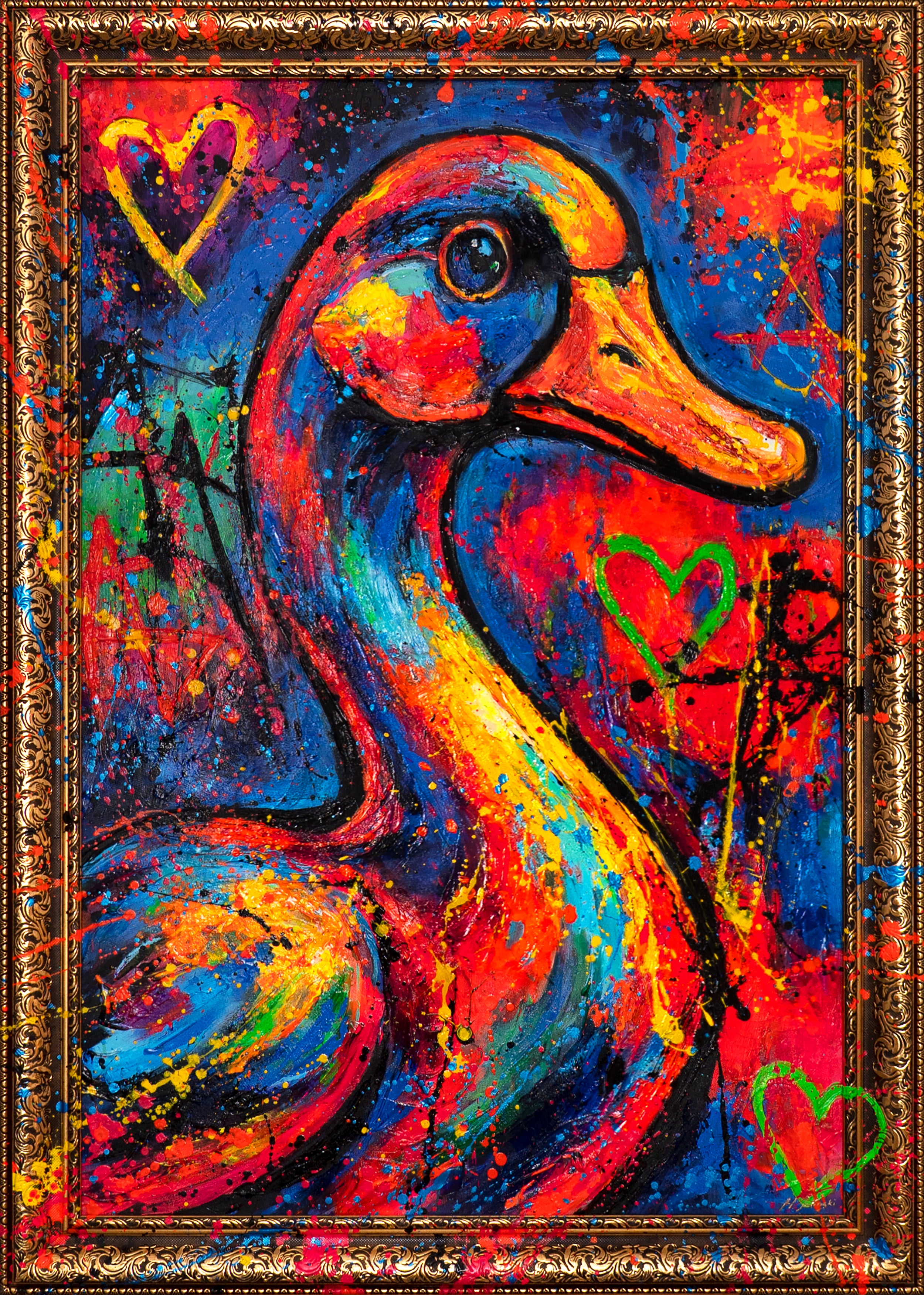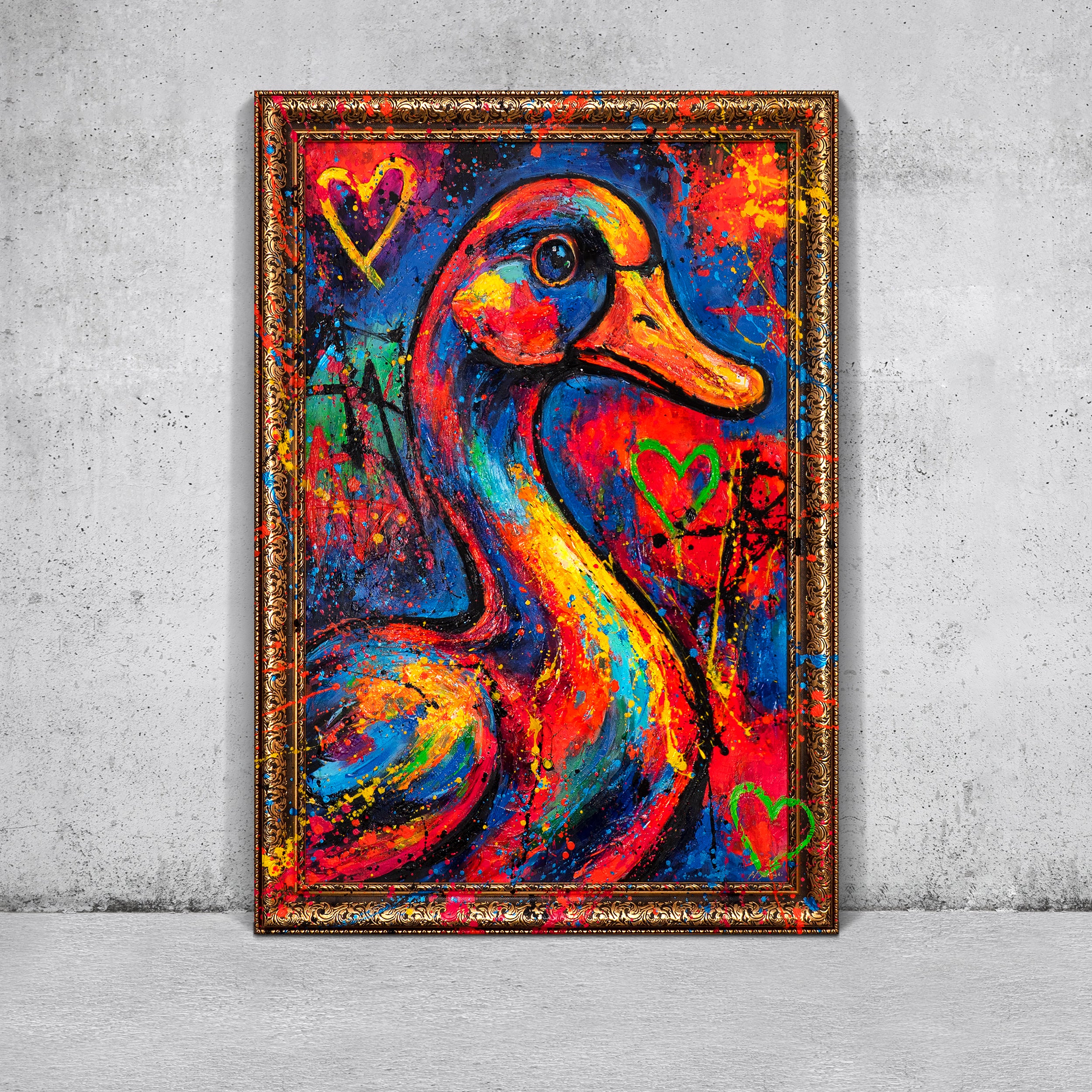 • Bunte Ente auf Leinwand handgemaltes Acrylbild im Atelier