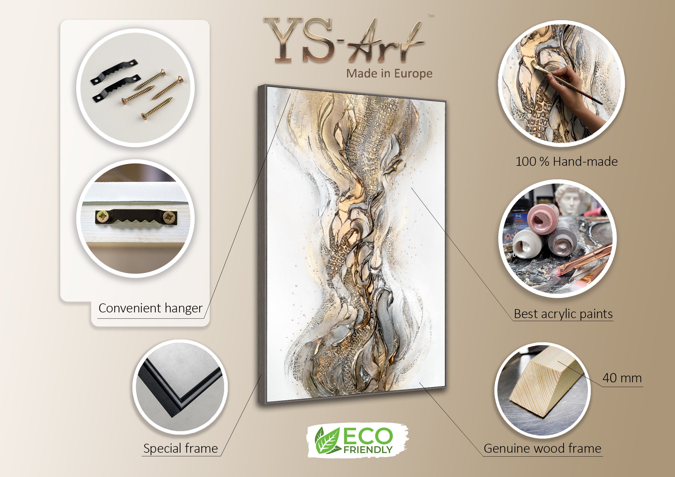 Strukturbilleder passer ideelt ind i lejligheder eller huse. Moderne billeder på blindramme med abstraktioner tilbyder raffinement, individualitet og fremhæver især ejerens gode smag. Du modtager ikke kun et maleri, men et eksklusivt og unikt kunstværk, malet af en talentfuld kunstner.