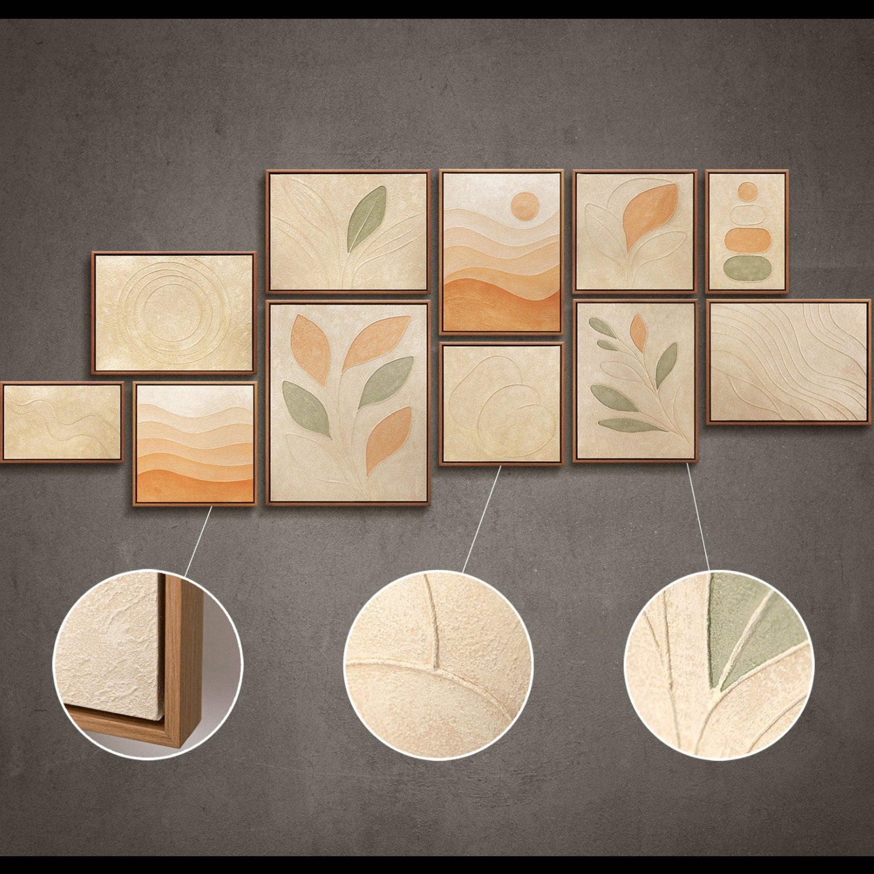 • Harmonische Farbpalette: Sanftes Salbeigrün, warmes Terrakotta und cremiges Beige machen dieses Bilder Set für das Wohnzimmer zur idealen Wahl. Es passt perfekt zu Einrichtungsstilen wie Japandi, Boho oder modernem Minimalismus