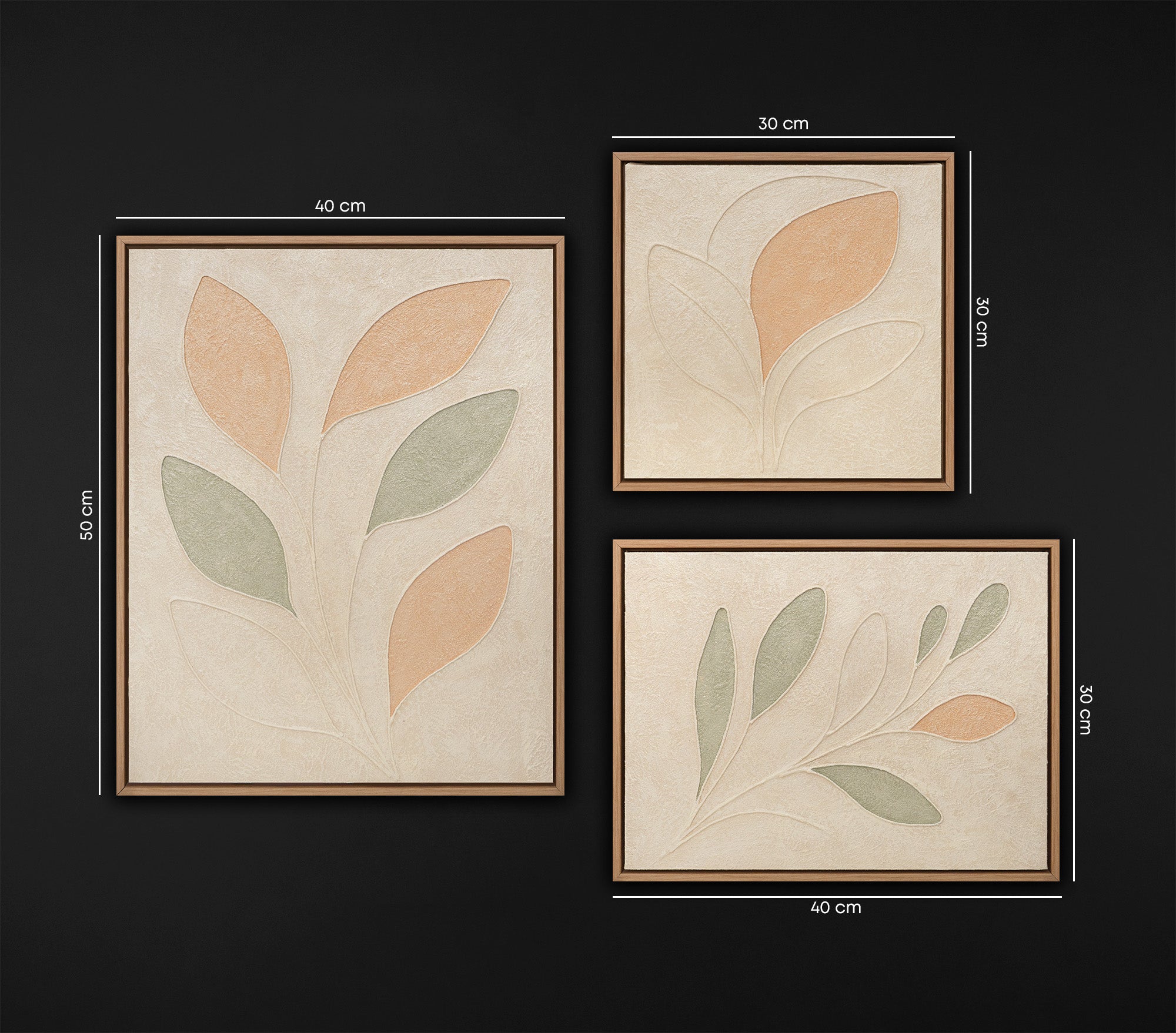 Hauchen Sie Ihrem Zuhause Leben und Abstraktion ein. Verwandeln Sie Ihre Wände in eine private Galerie mit unserem exklusiven Wandbilder Set aus drei strukturierten Kunstwerken. Jedes Werk ist ein 100%iges Unikat aus unserem Atelier YS-Art. Diese Kollektion verbindet moderne, minimalistische Ästhetik mit der Tiefe organischer Formen.