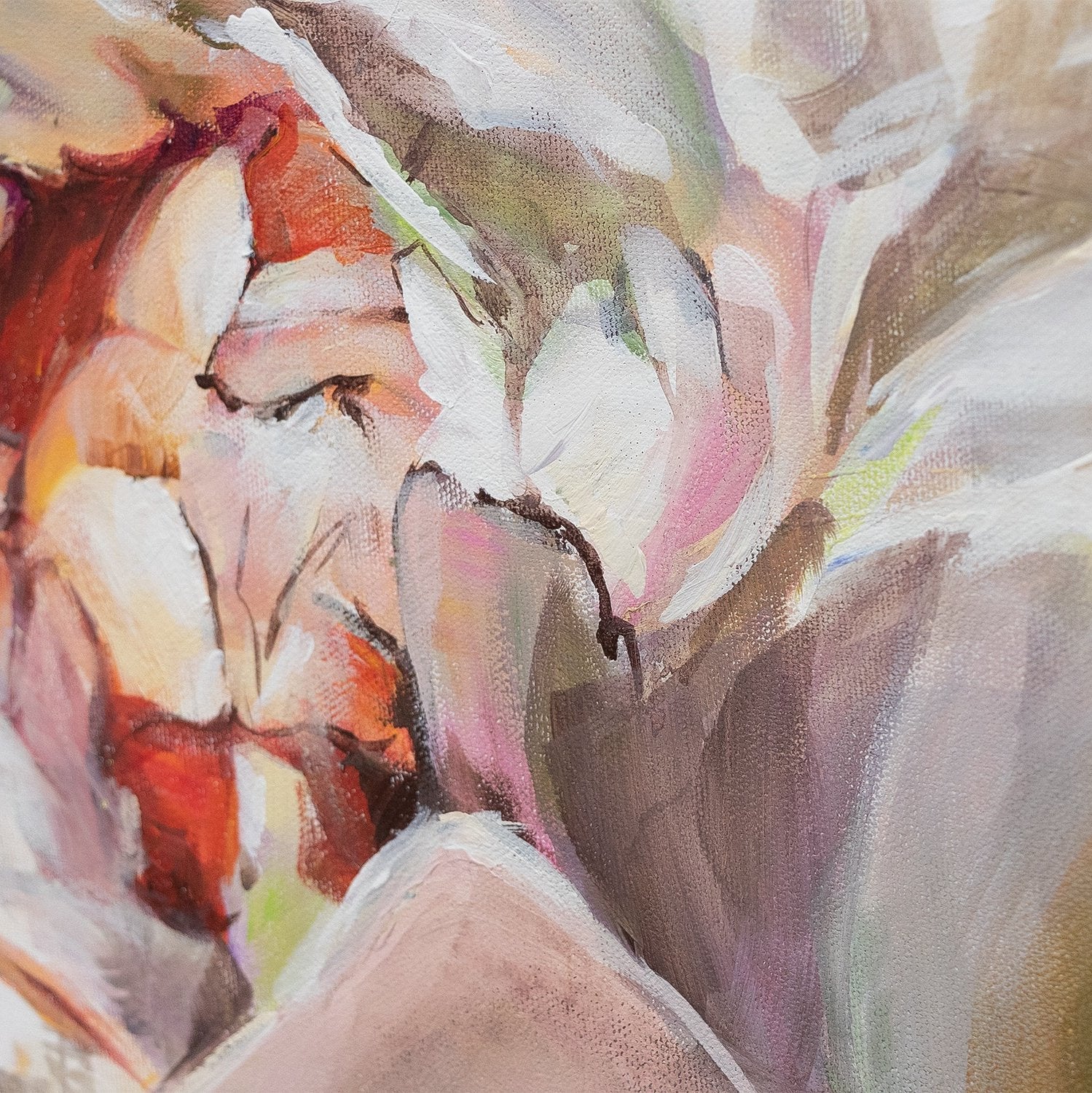 Dette billede er det perfekte valg for elskere af blomster motiver og giver stue eller soveværelse en frisk og elegant atmosfære. Det er et unikt kunstværk, der bringer naturens skønhed direkte ind i hjemmet.
