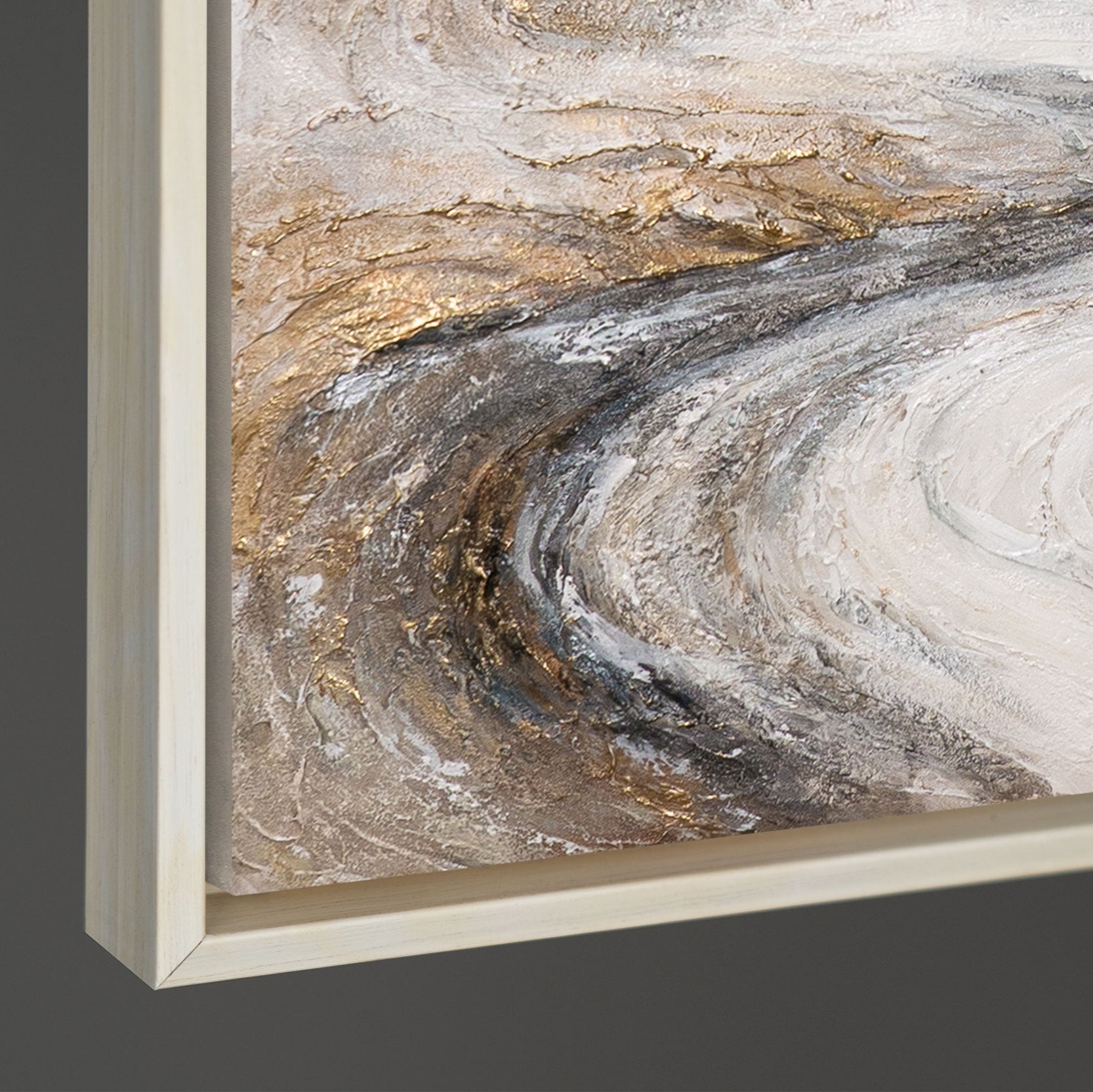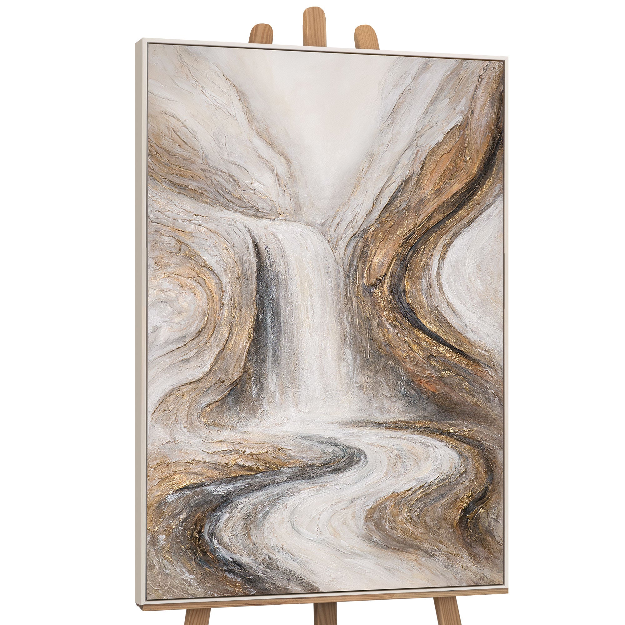 "Vandfaldets Drøm" er et fascinerende, håndmalet akrylmaleri, der indfanger den flydende energi fra et vandfald i harmoniske beige, hvide og gyldne nuancer. Den reliefagtige struktur forstærker vandets livlighed og giver værket dybde og dynamik. Bløde farveovergange og gyldne detaljer understreger bevægelsen og tilfører elegancen til ethvert rum.