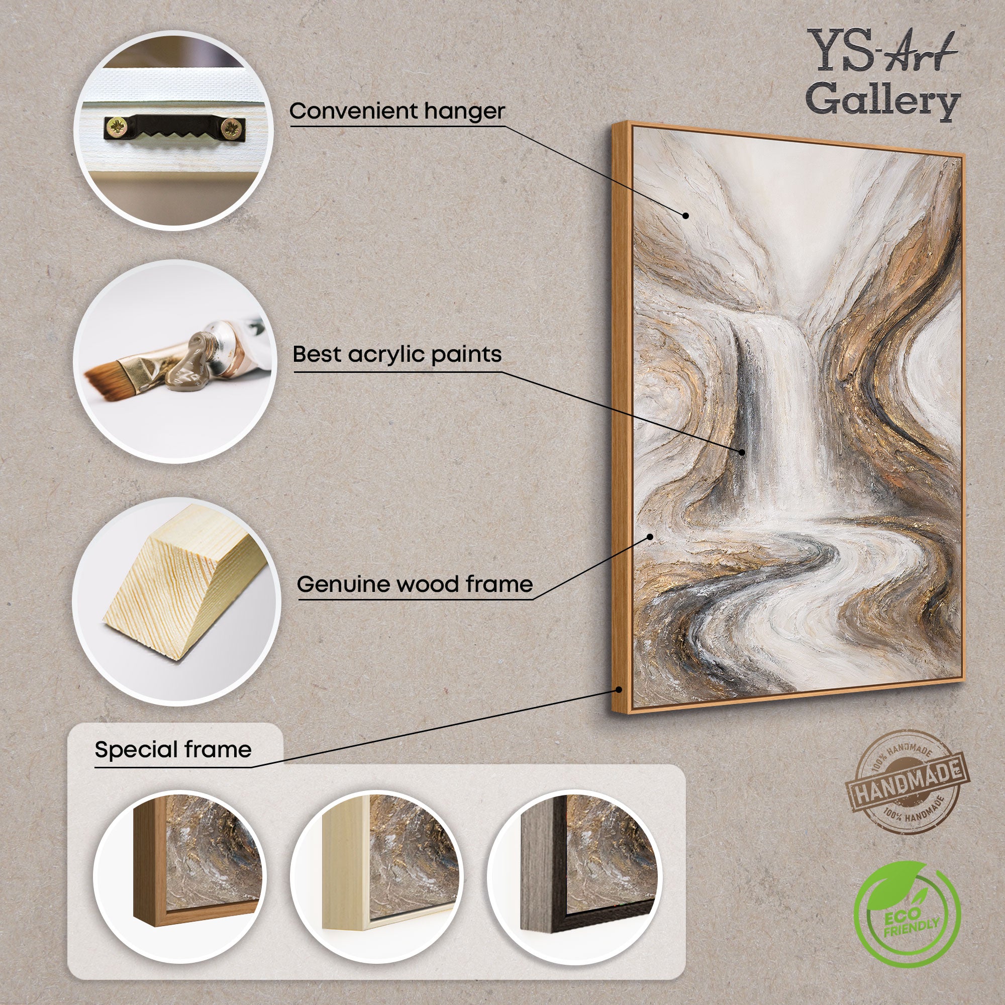 "Vandfaldets Drøm" forener bevægelse, struktur og elegance i et håndmalet unikum, der tilfører dit hjem et strejf af eksklusivitet og harmoni – med gratis levering.