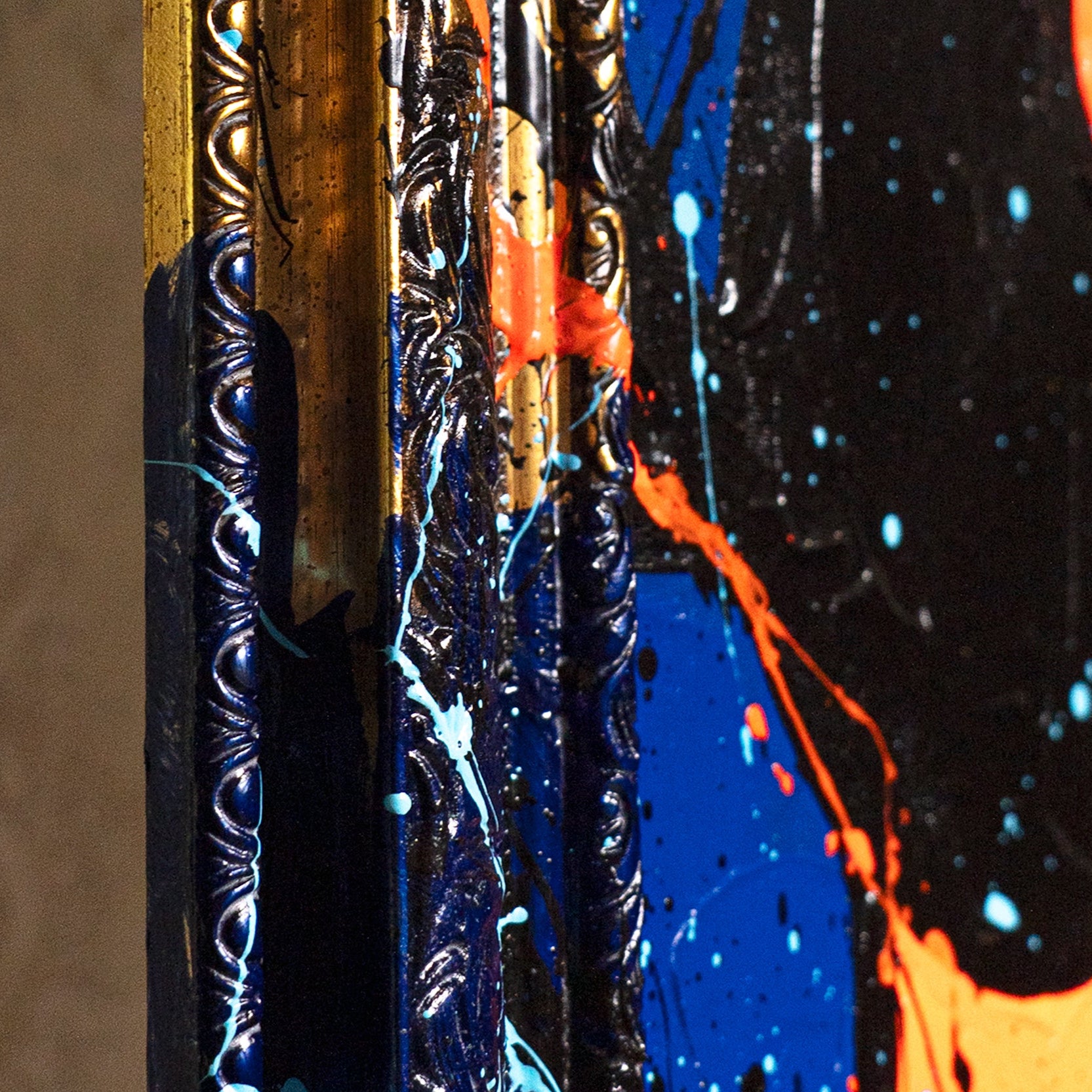 Perfekt til alle, der elsker moderne vægdekoration til stuen, farverig abstrakt kunst og individuelle moderne vægbilleder. Dette håndmalede værk er det ideelle valg for dem, der vil købe eksklusive malerier online og give deres rum et urbant, kunstnerisk præg.
