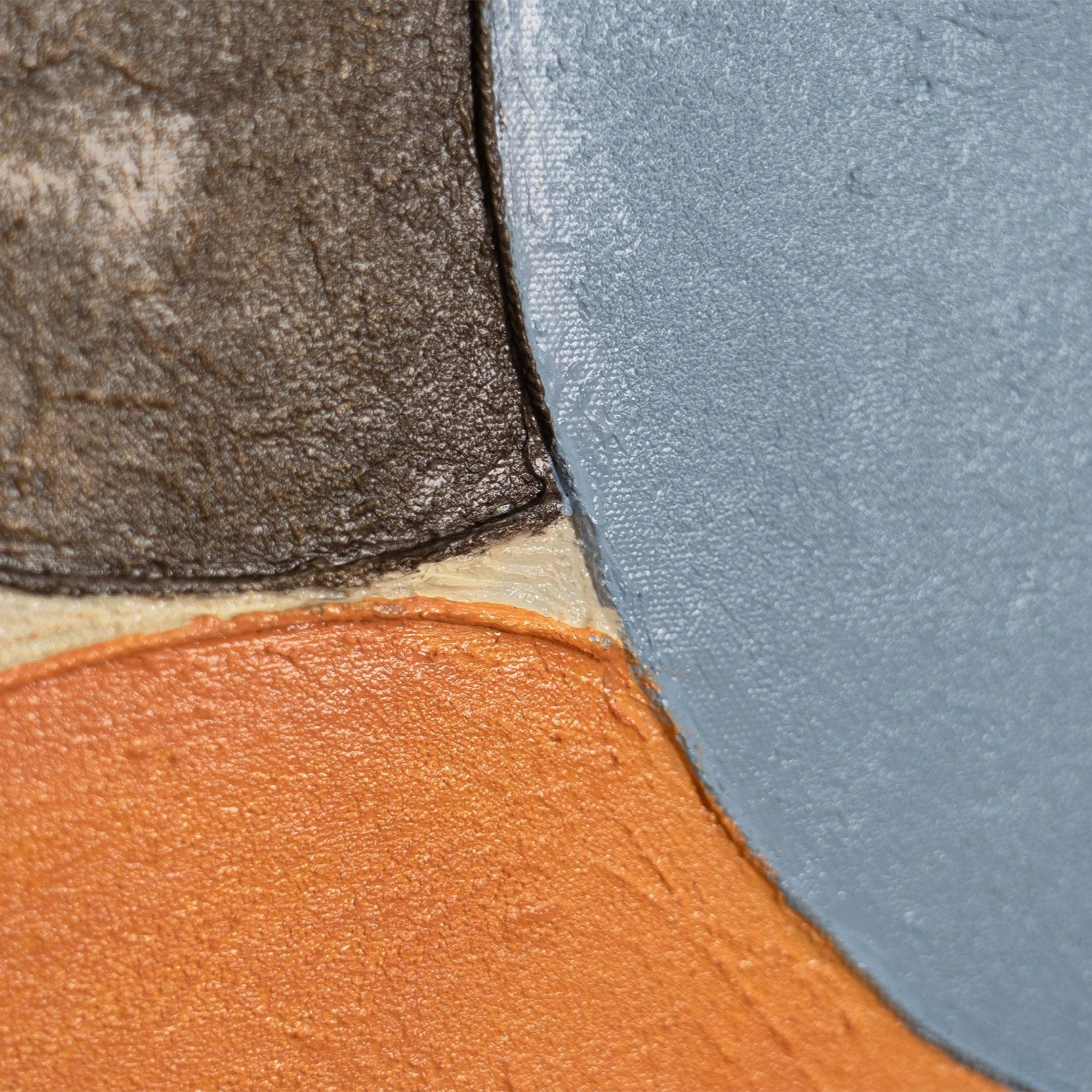 "Sfære af balance" er et moderne, håndmalet acrylmaleri på lærred, der fascinerer med sine klare geometriske former og harmoniske farvefelter. Jordnære brune og beige toner forenes med blidt grønt, strålende orange og køligt blå, hvilket skaber en komposition, der udstråler ro og balance. Den strukturerede overflade giver værket dybde og en unik taktil oplevelse.