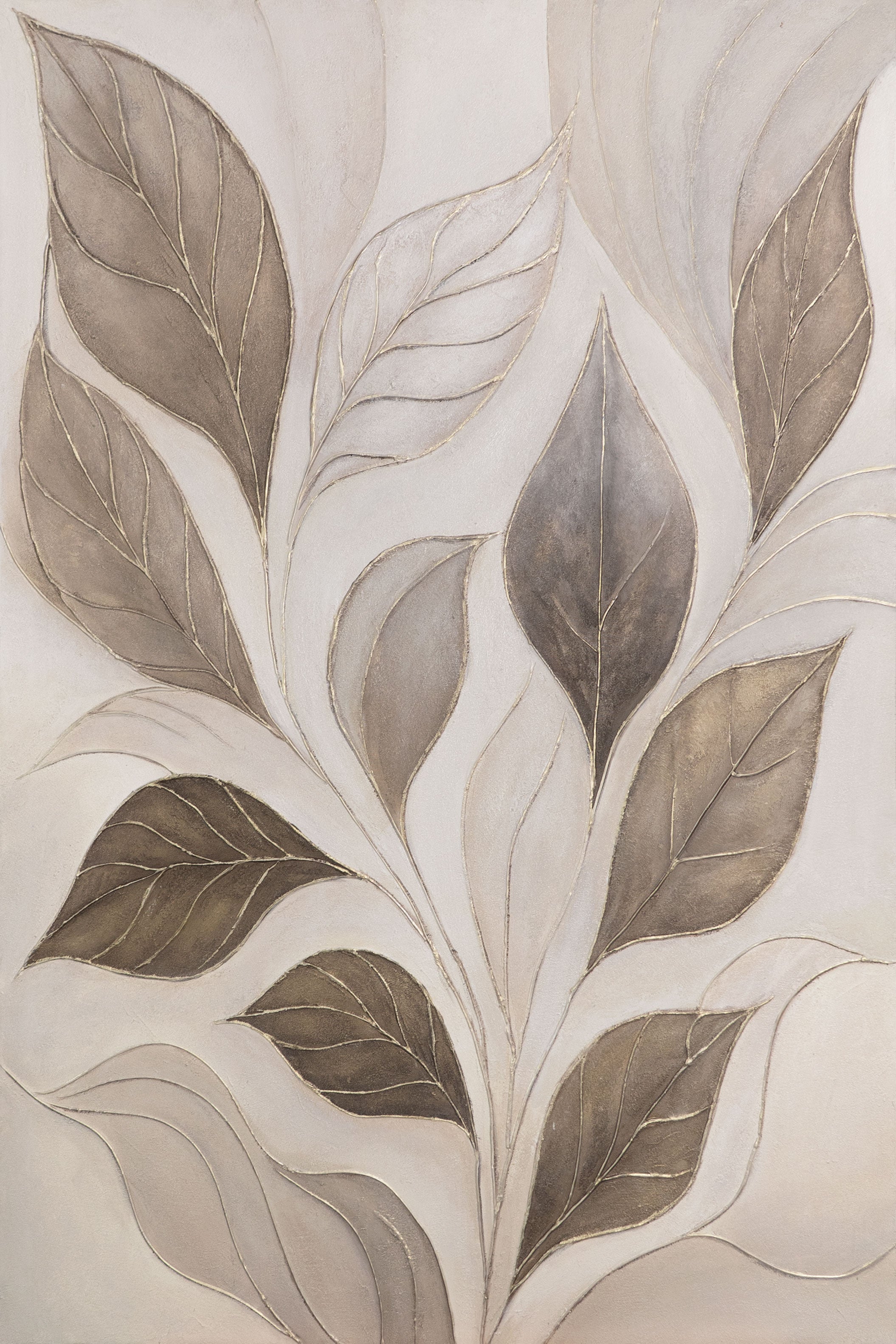 • Handgemalte Wandkunst Blattmotiv beige grau