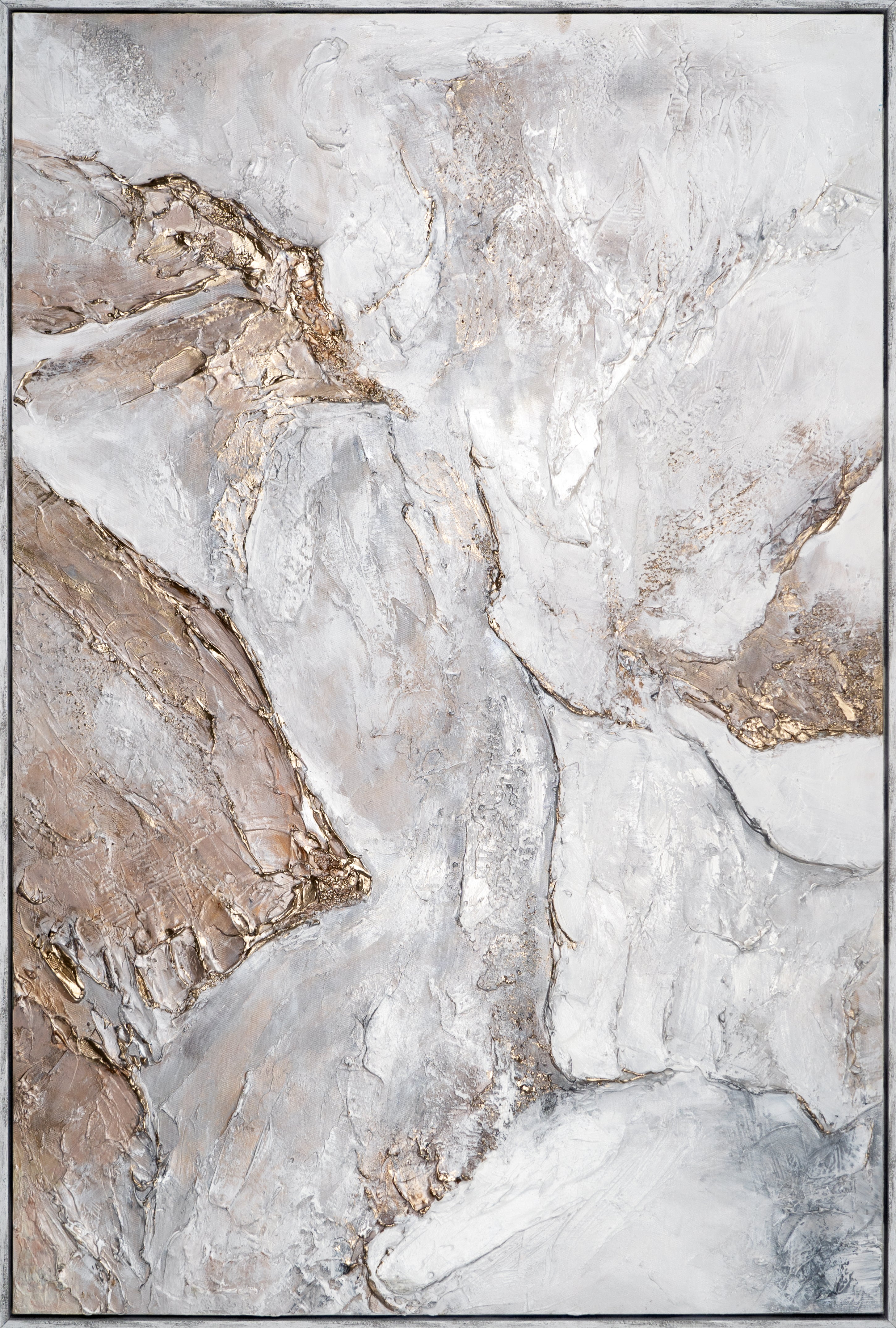 Dette strukturerede akrylmaleri i dæmpede naturtoner indfanger den stille skønhed i nordiske landskaber på abstrakt vis. Den relieflignende tekstur fremhæver organiske former i hvid, grå og beige og udstråler ro, rum og jordforbindelse. De klare linjer giver værket et harmonisk og moderne udtryk – ideelt til alle, der søger blid men udtryksfuld kunst til hjemmet.