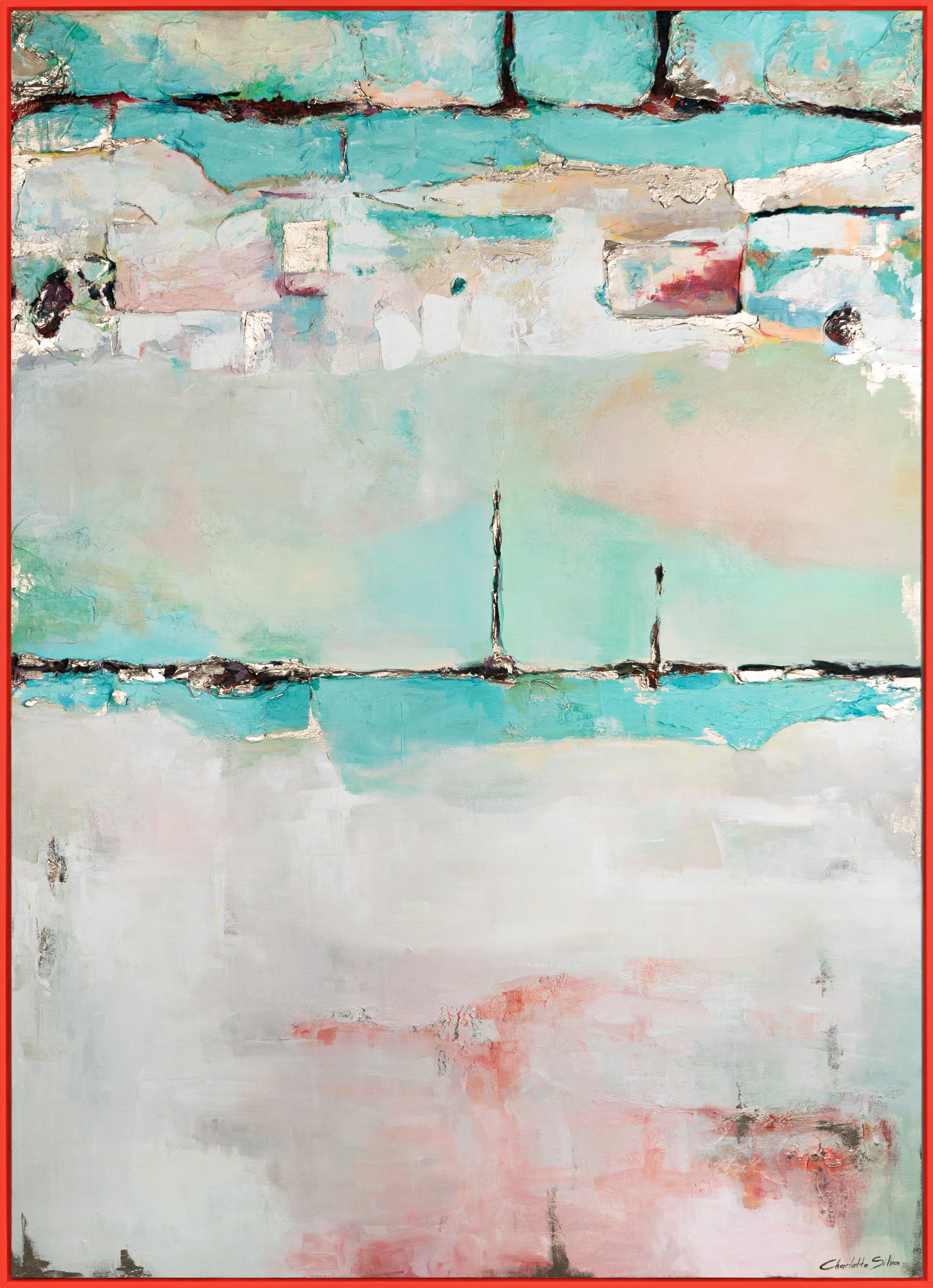 Dette håndmalede lærredsmaleri imponerer med sin struktur og subtile farveovergange, som tilfører dybde og harmoni til enhver væg.
