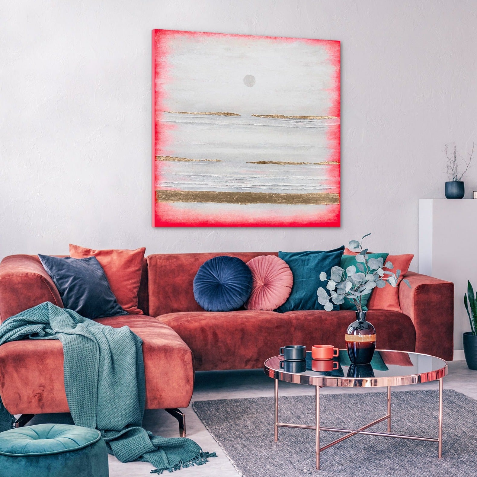 Hvert billede bliver omhyggeligt kvalitetstjekket før forsendelse. Hvis du ikke bryder dig om maleriet, kan du returnere det uden problemer, og vi refunderer beløbet. Du kan nemt købe et håndmalet moderne kunstværk – læg blot det ønskede maleri i indkøbskurven, eller skriv til os for flere oplysninger.
