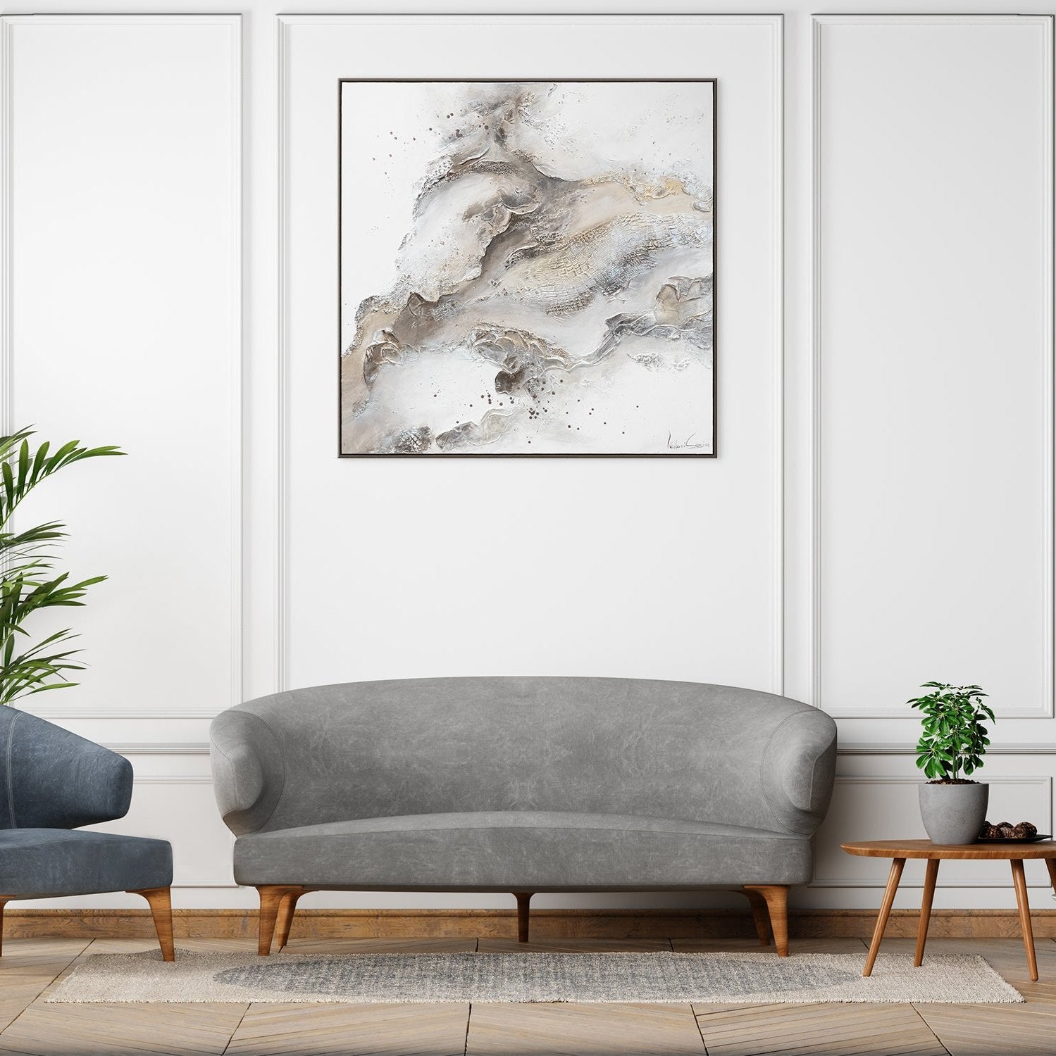 Oplev skønheden i moderne kunst med dette imponerende, håndmalede abstrakte kunstværk på lærred. Den harmoniske kombination af neutrale farver, strukturerede elementer og dynamiske bevægelser skaber en unik visuel oplevelse. Denne komposition indfanger essensen af abstrakt kunst og tilføjer ethvert rum en elegant og nutidig atmosfære. Perfekt til stuer, kontorer eller enhver indretning, der søger et strejf af raffinement.