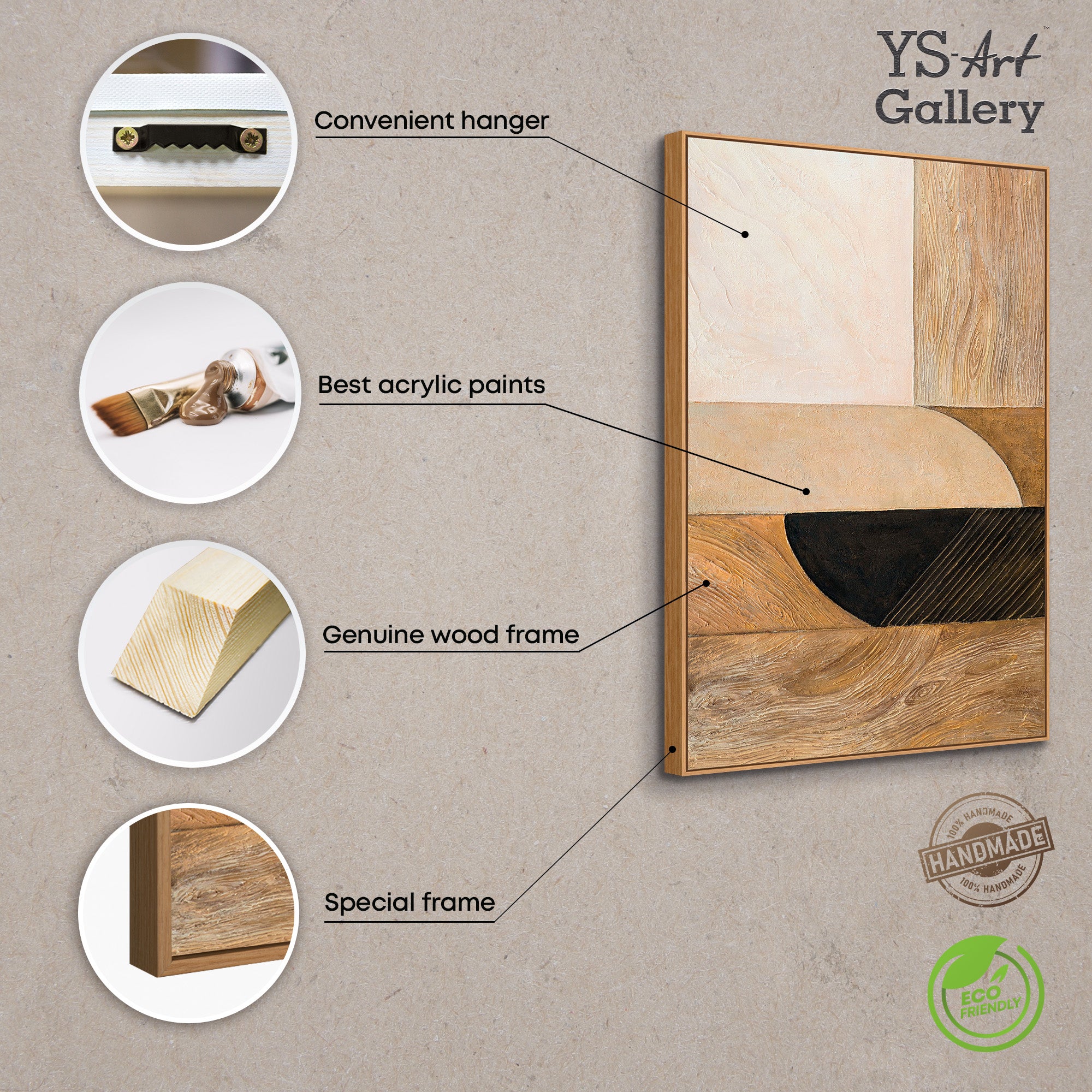 „Natürliche Ornamente“ ist ein handgemaltes abstraktes Gemälde mit ausgeprägter Materialstruktur und klar gegliederten Flächen. Warme Beige-, Sand- und Brauntöne treffen auf kontrastierende dunkle Elemente und feine lineare Strukturen, die an natürliche Oberflächen und organische Muster erinnern.