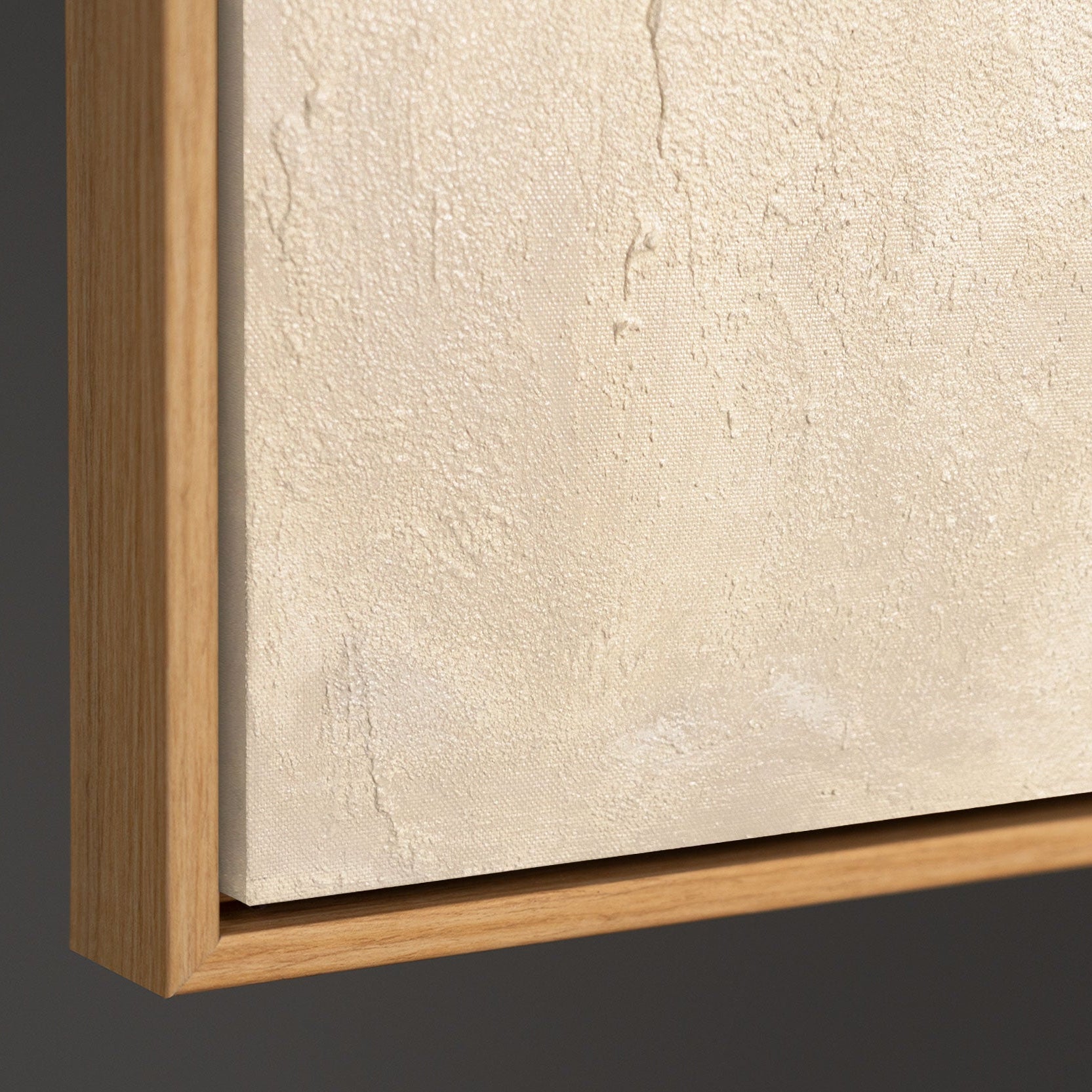 Dette håndmalede lærred præsenteres indrammet og er ideelt som en moderne vægdekoration til stuer, soveværelser eller stille arbejdsområder. Det diskrete farveskema og den fine tekstur skaber en lys, afslappet atmosfære og passer harmonisk ind i tidløse, naturlige interiører.