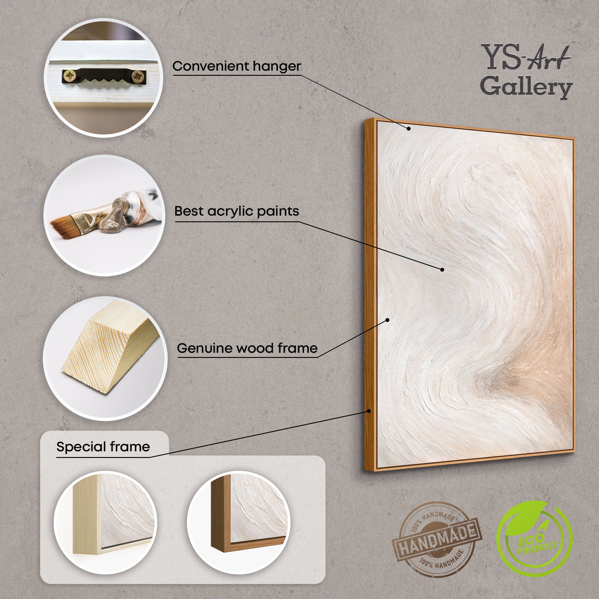 - Håndmalet acrylmaleri i lyse naturfarver