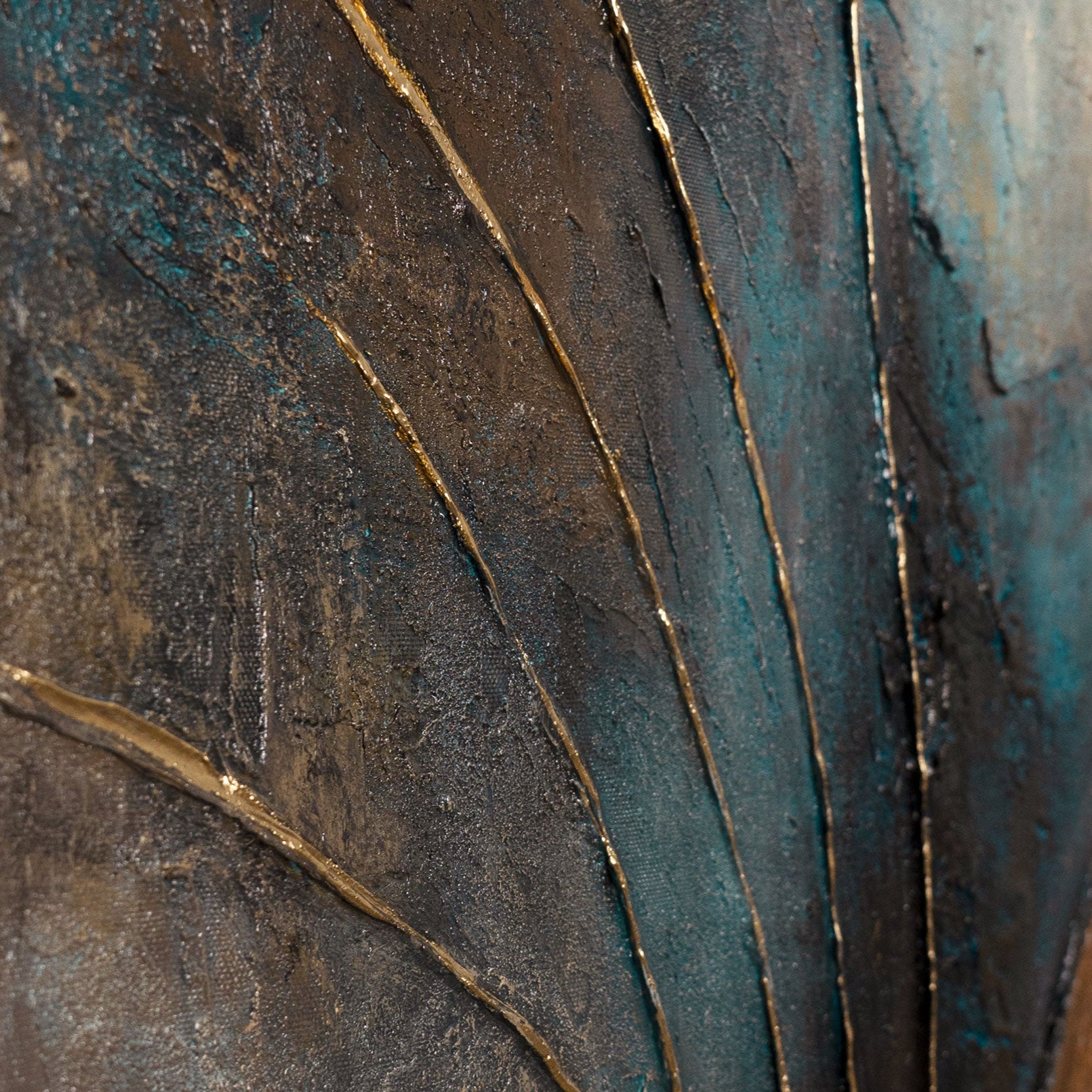 - Udtryksfuldt akrylmaleri med guldakcenter