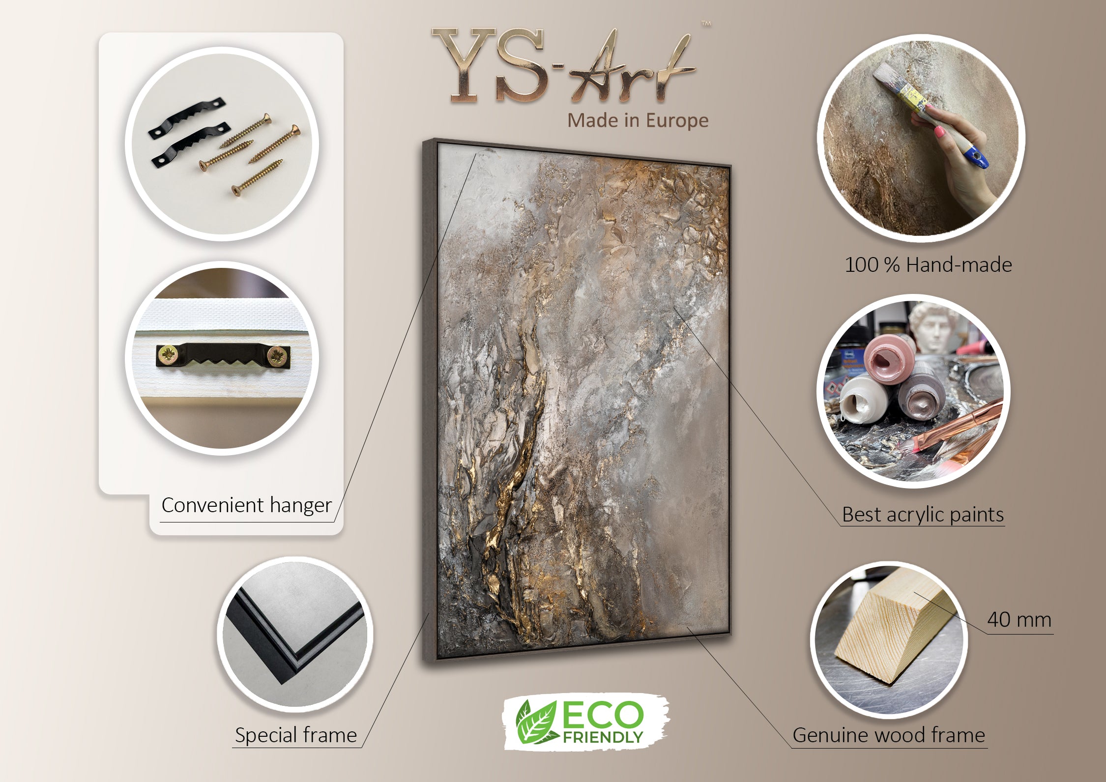 - Håndlavet: Hvert maleri fremstilles omhyggeligt i hånden med brug af kvalitetsmaterialer og en unik tilgang til at skabe teksturer.