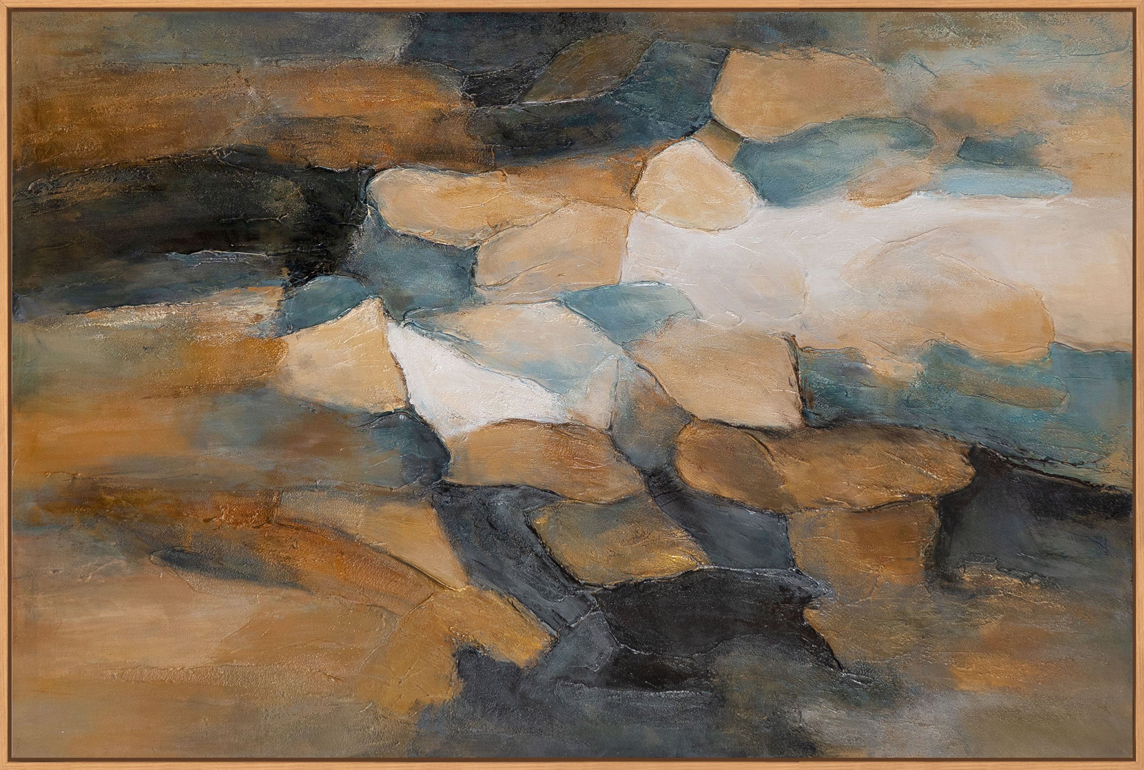 Lærredsmaleriet præsenteres indrammet og er særligt velegnet som soveværelseskunst til afslappende retræter. Den dæmpede farvepalet forstærker den rolige atmosfære og passer harmonisk ind i moderne og tidløse interiører.
