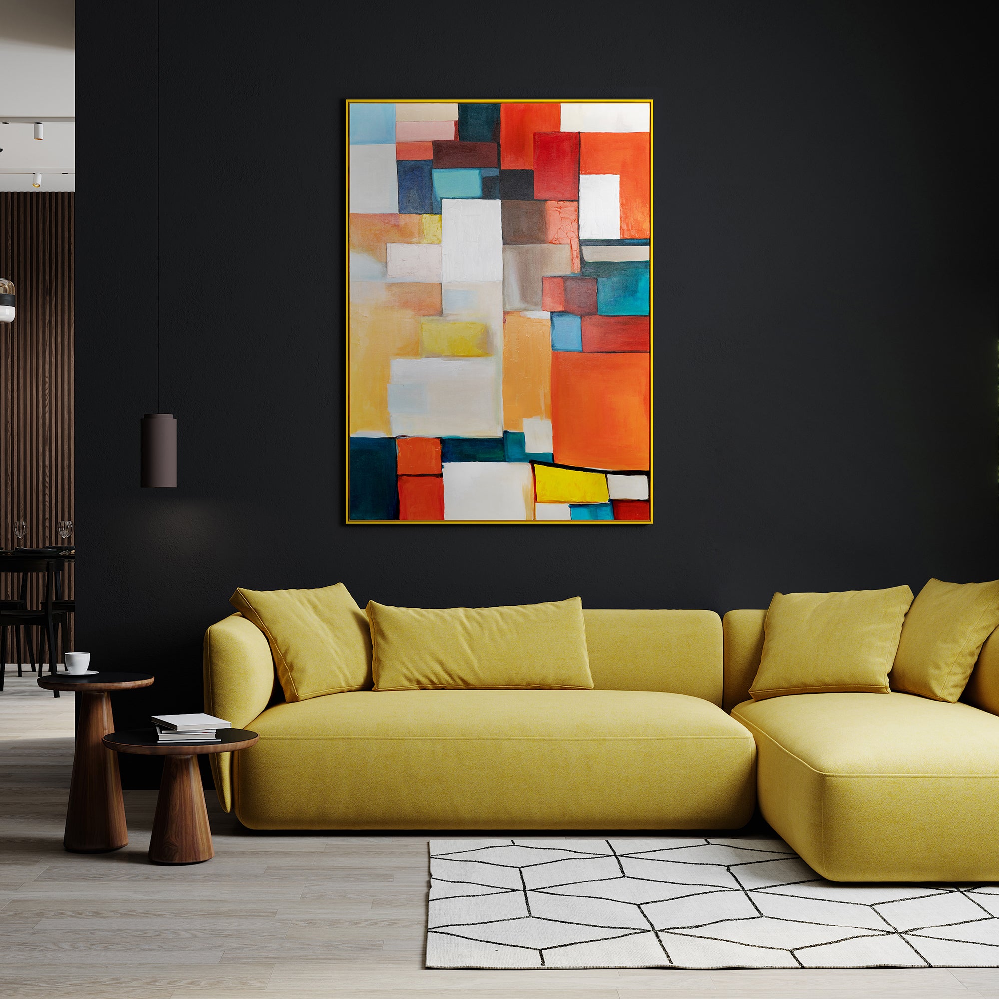 Opdag det perfekte abstrakt maleri til dit hjem med "Geometrisk illusion II", et håndmalet originalværk med stærk visuel appel. Farverige, geometriske felter smelter sammen i et moderne mønster og gør dette akrylmaleri med struktur til et fascinerende midtpunkt over sofaen eller i enhver indretning.