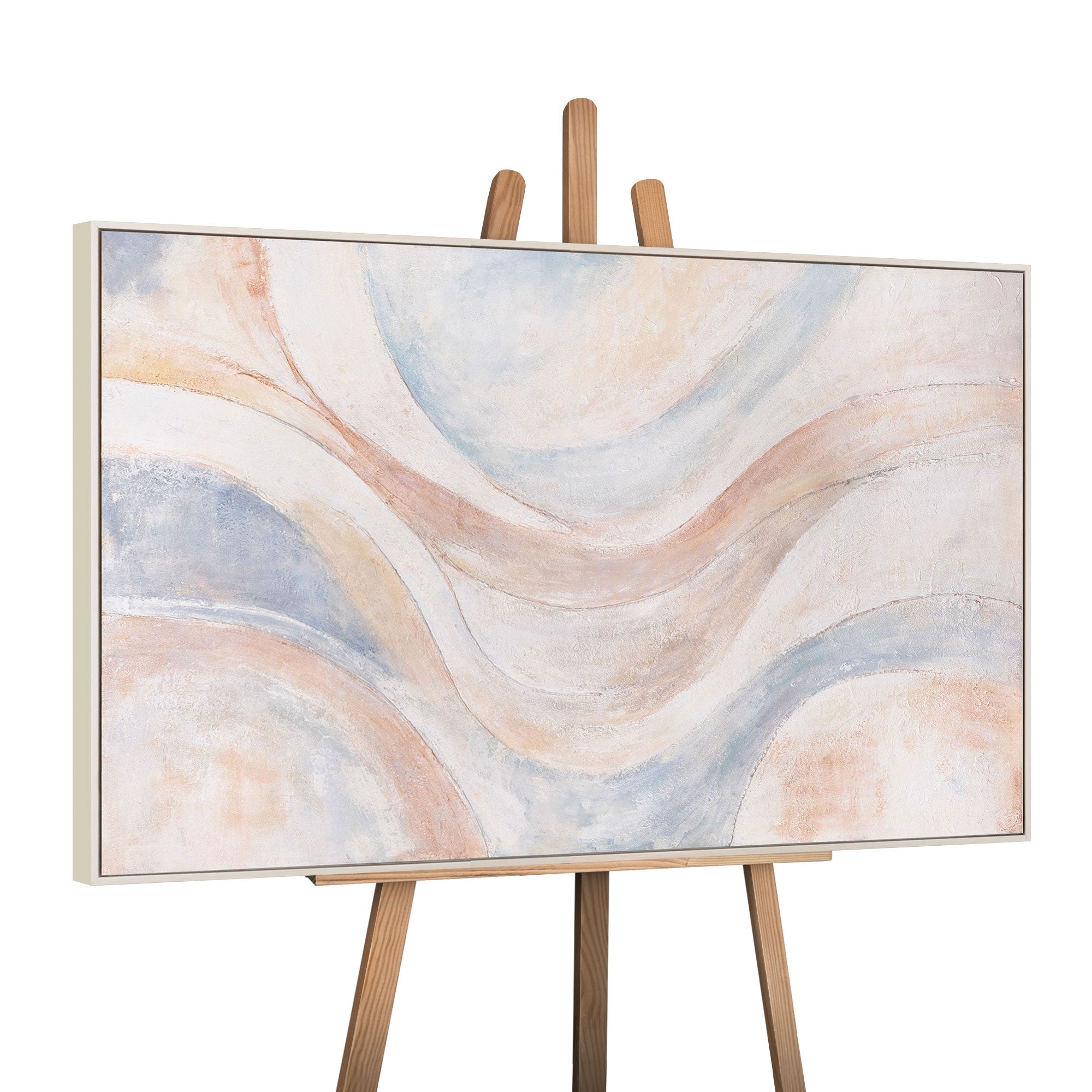 Det håndmalede akrylmaleri "Vindlinjer" fortryller med sin blide farvesammensætning i sarte pastelfarver som beige, blå og rosa. De svungne linjer danner en harmonisk abstraktion, der vækker associationer til bevægelse, lethed og rolige naturstemninger. Den strukturerede overflade tilfører værket dybde og et levende, håndmalet udtryk.