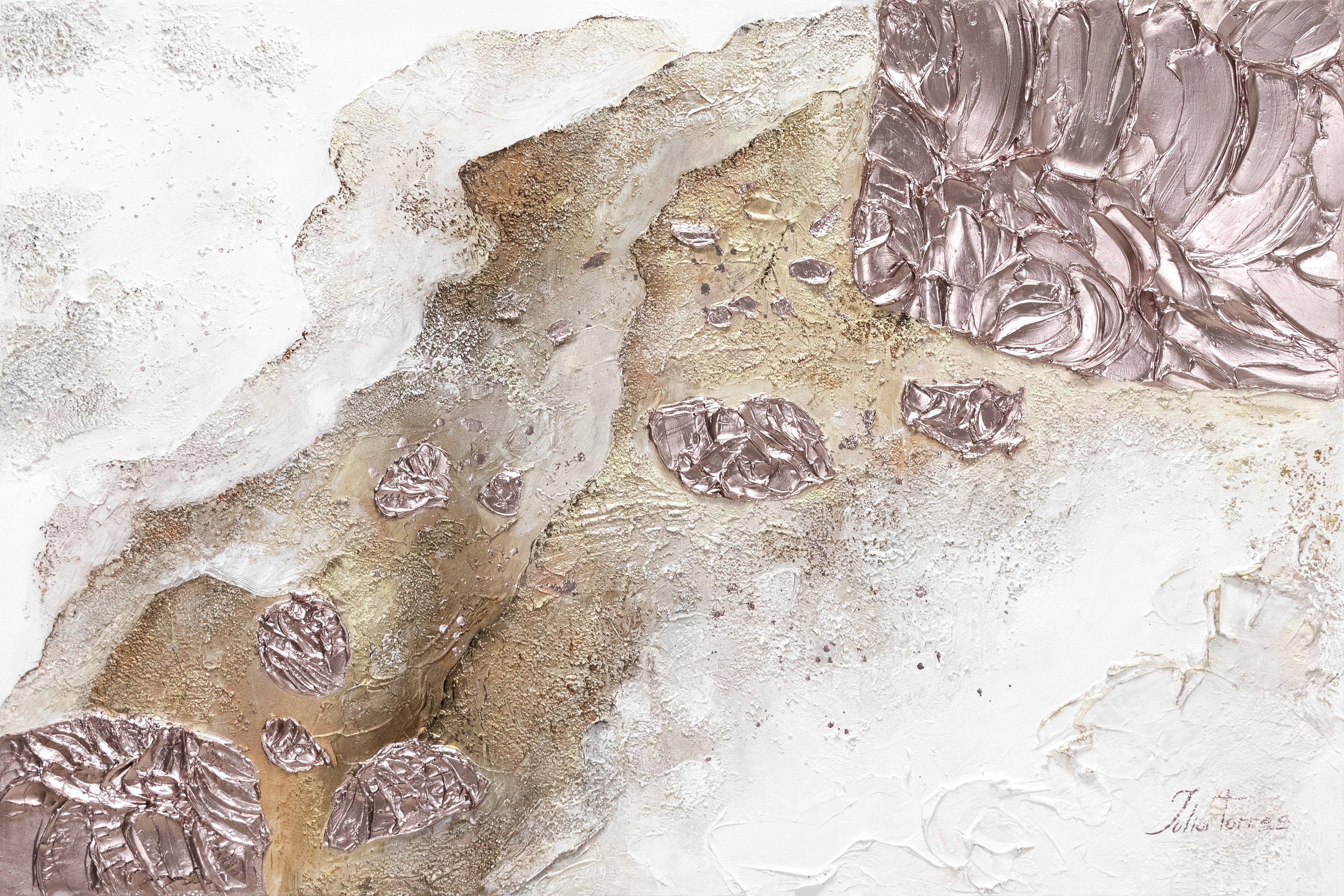 Farvebalance, teksturspil og linjeføring – alt dette er forenet i vores kunstværk. Maleriet "Evighed" fra vores kollektion Trend bliver et unikt accent i dit interiør.