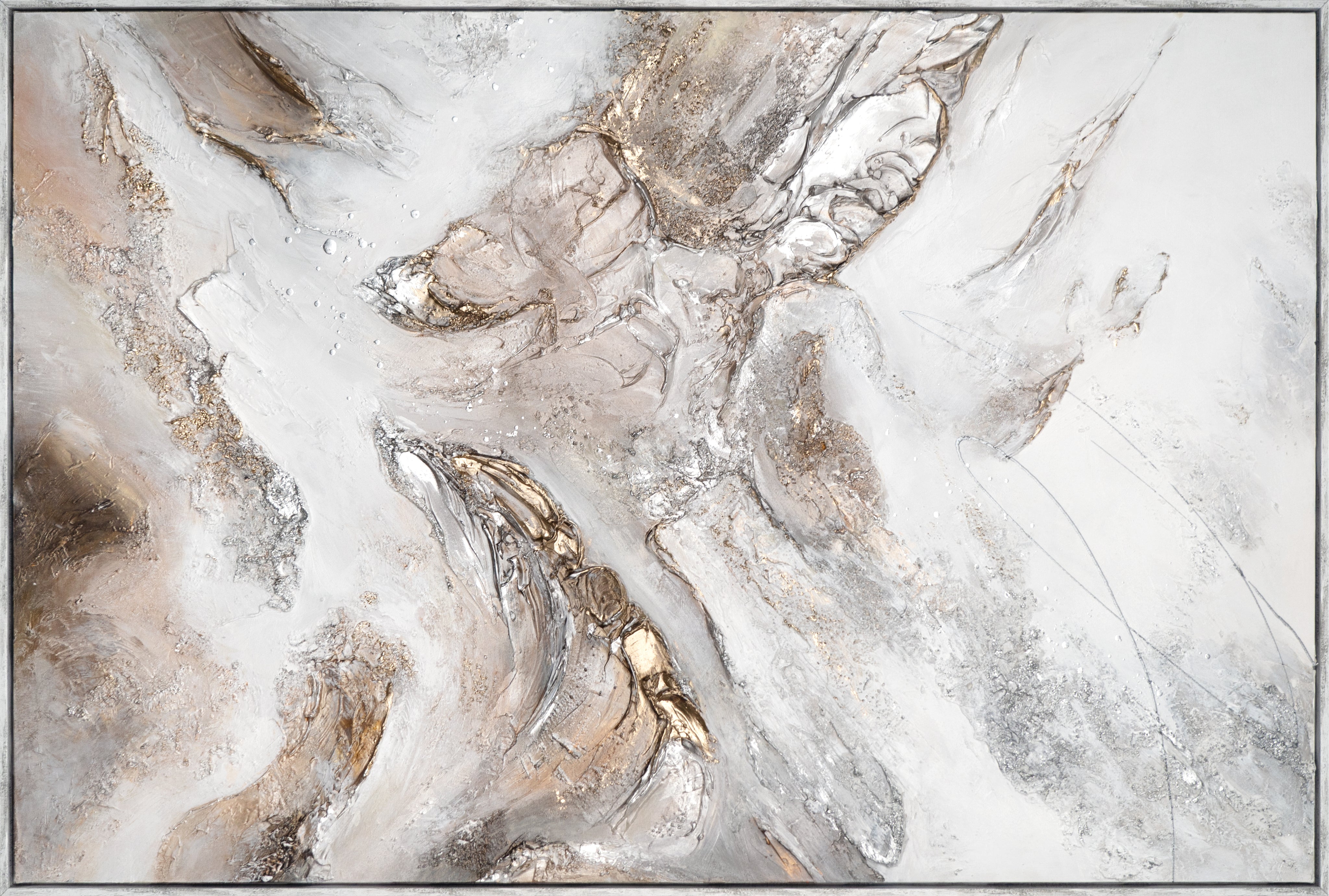 👉🏻Unikt design: Den abstrakte kunst har en iøjnefaldende struktureret overflade, der giver værket dybde og interesse.