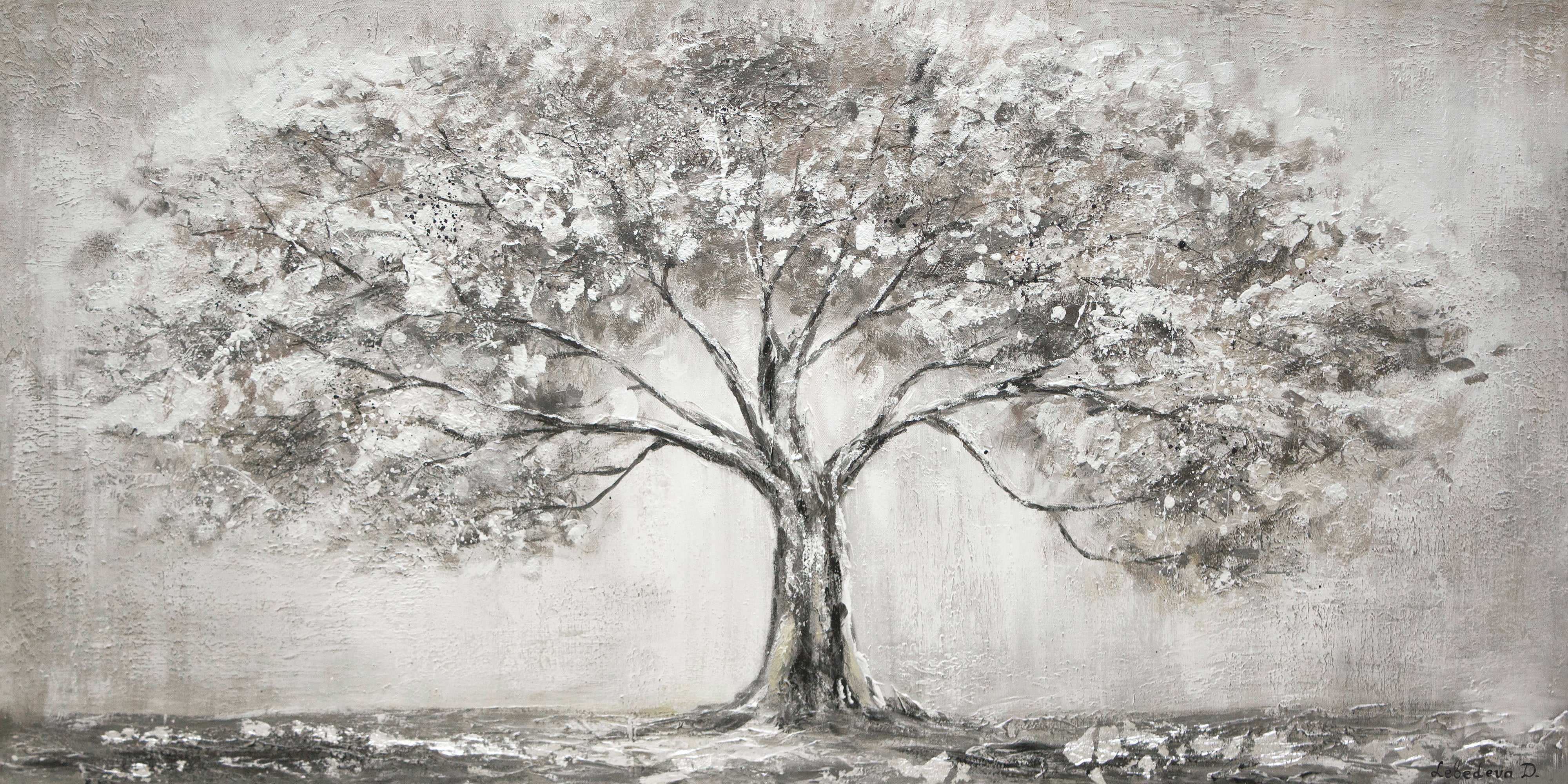 Lærredsbilledet „Livets træ“ er et håndmalet acrylmaleri, der med en blid palette af gråtoner skaber en rolig og harmonisk atmosfære. Det fine træ med vidt forgrenede grene symboliserer liv og vækst. Den strukturerede overflade giver værket en plastisk dybde, der får motivet til at fremstå levende. Denne abstrakte kunst passer perfekt ind i moderne stuer og kontorer og tilfører en naturlig ro til rummet.