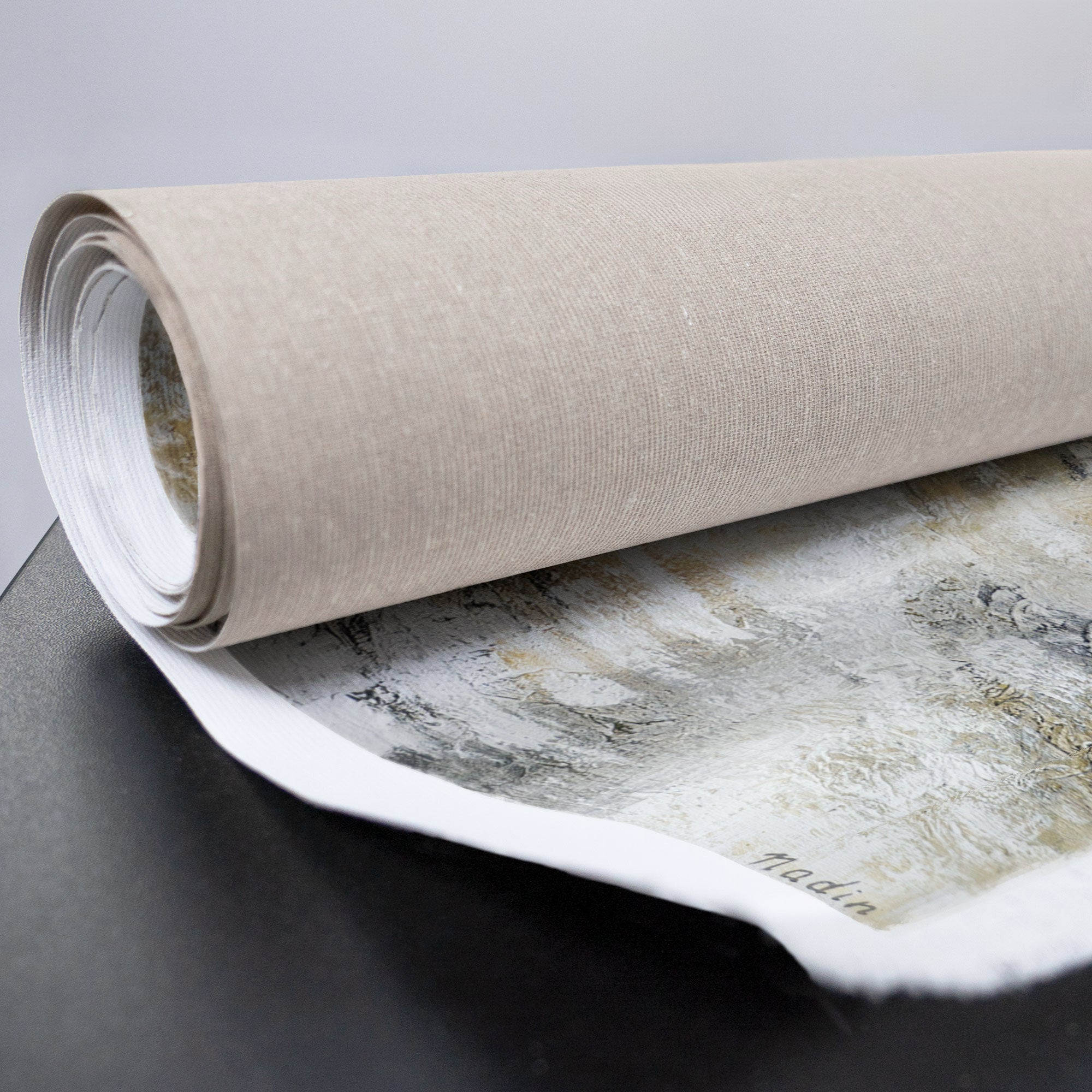 Det håndmalede acrylmaleri „Modenschau“ viser en elegant kvindefigur, der er sat i scene med blide jordtoner og grå nuancer. Kompositionen imponerer med sin afdæmpede farvepalette og den udtryksfulde, strukturerede overflade, som giver værket dybde og dynamik. Denne kunstneriske fremstilling udstråler tidløs elegance og lethed, hvilket giver ethvert rum en særlig atmosfære. Dette lærredsmaleri er det perfekte valg til stilbevidste boligindretninger, kontorer eller receptionsområder.
