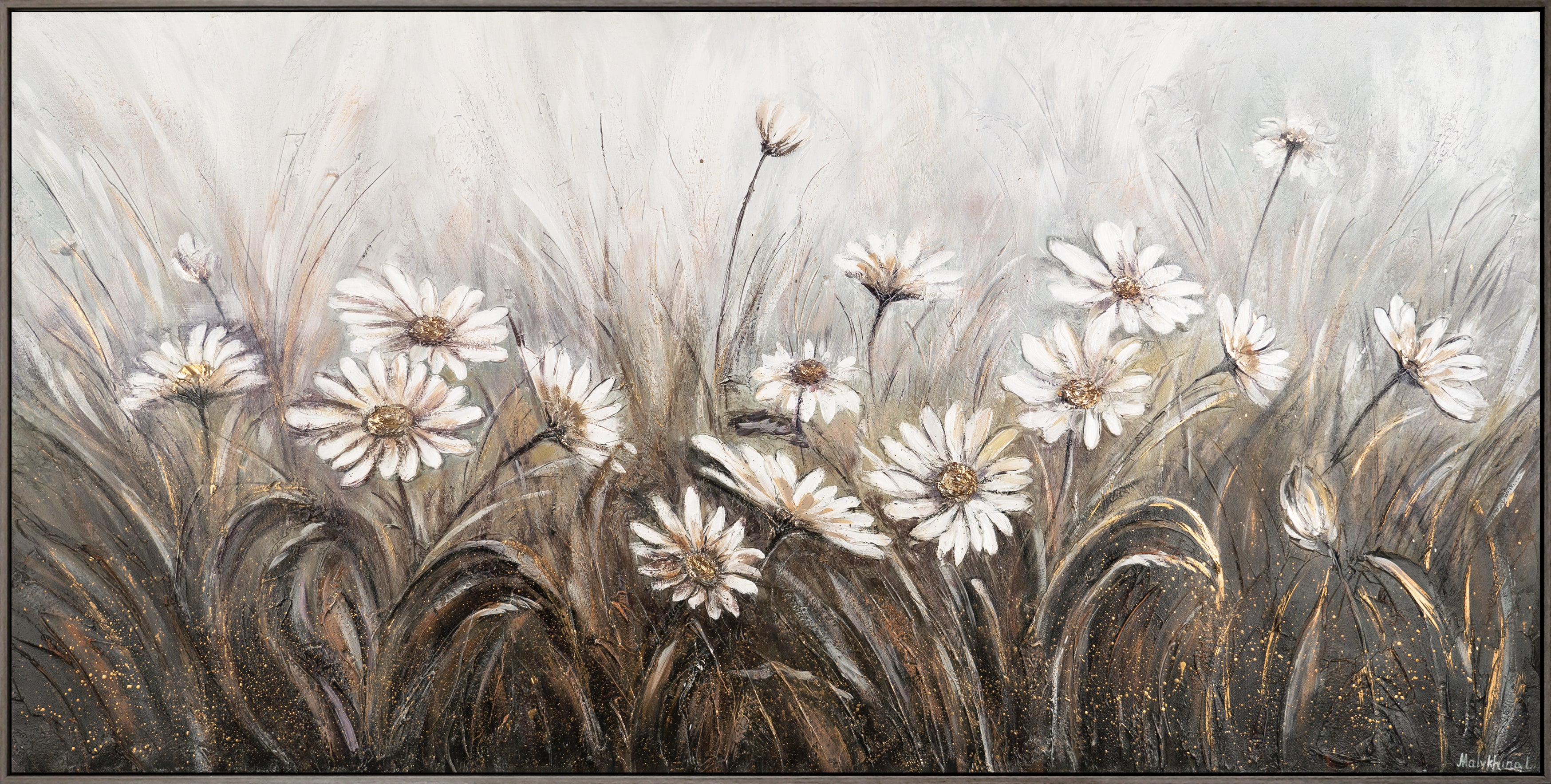 Stue akrylmalerier abstrakt moderne med ramme "Tusindfryd". Moderne blomsterbilleder på lærred