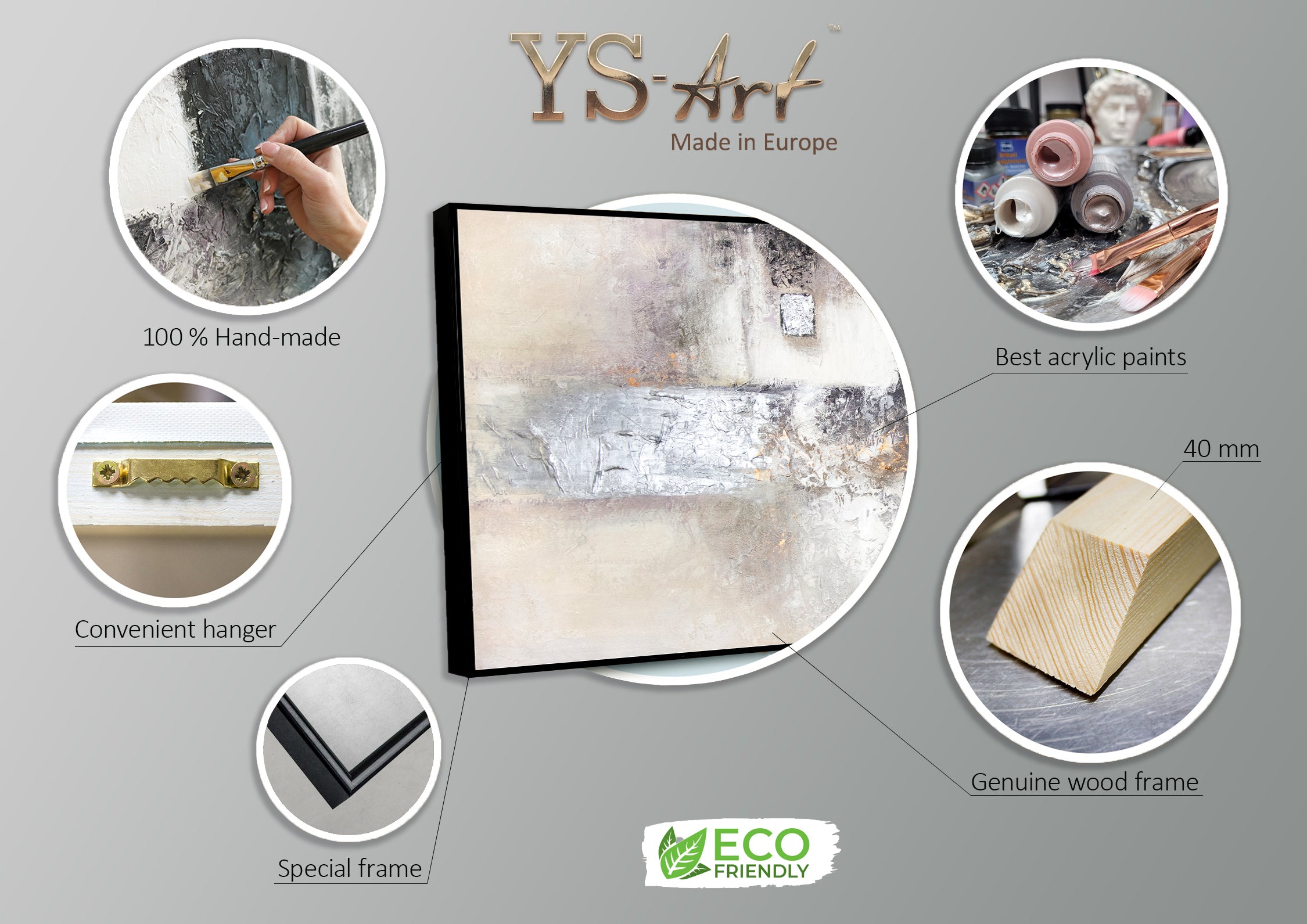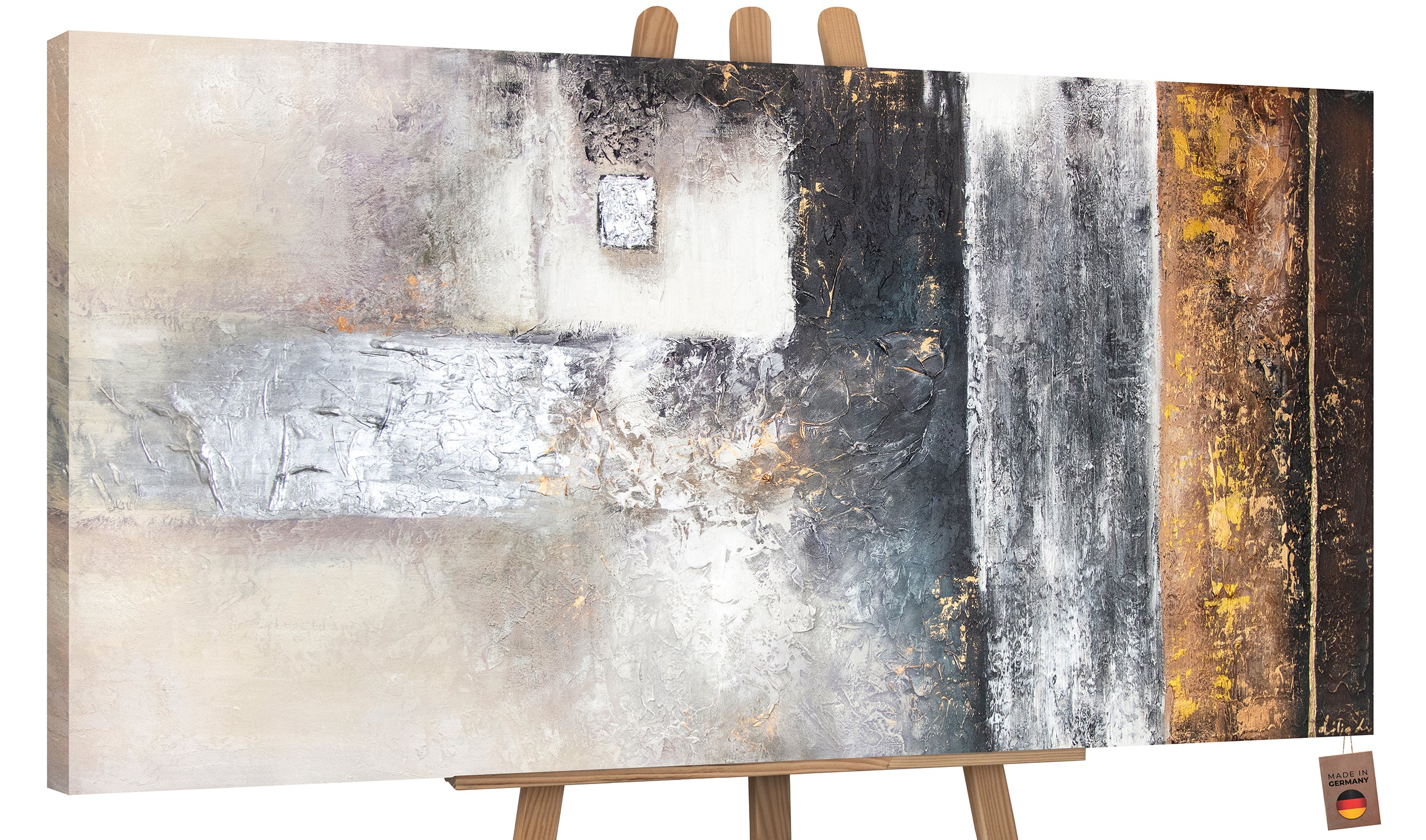 Giv dit hjem en særlig stemning med dette abstrakte kunstværk, som er 100% håndmalet og fremstillet med stor sans for detaljer. Den harmoniske blanding af grå, hvide og brunlige nuancer skaber en stemningsfuld atmosfære og tilføjer et elegant udtryk til enhver moderne boligindretning. Dette kunstværk er unikt og vil være en perfekt accent i stue, kontor eller entre.