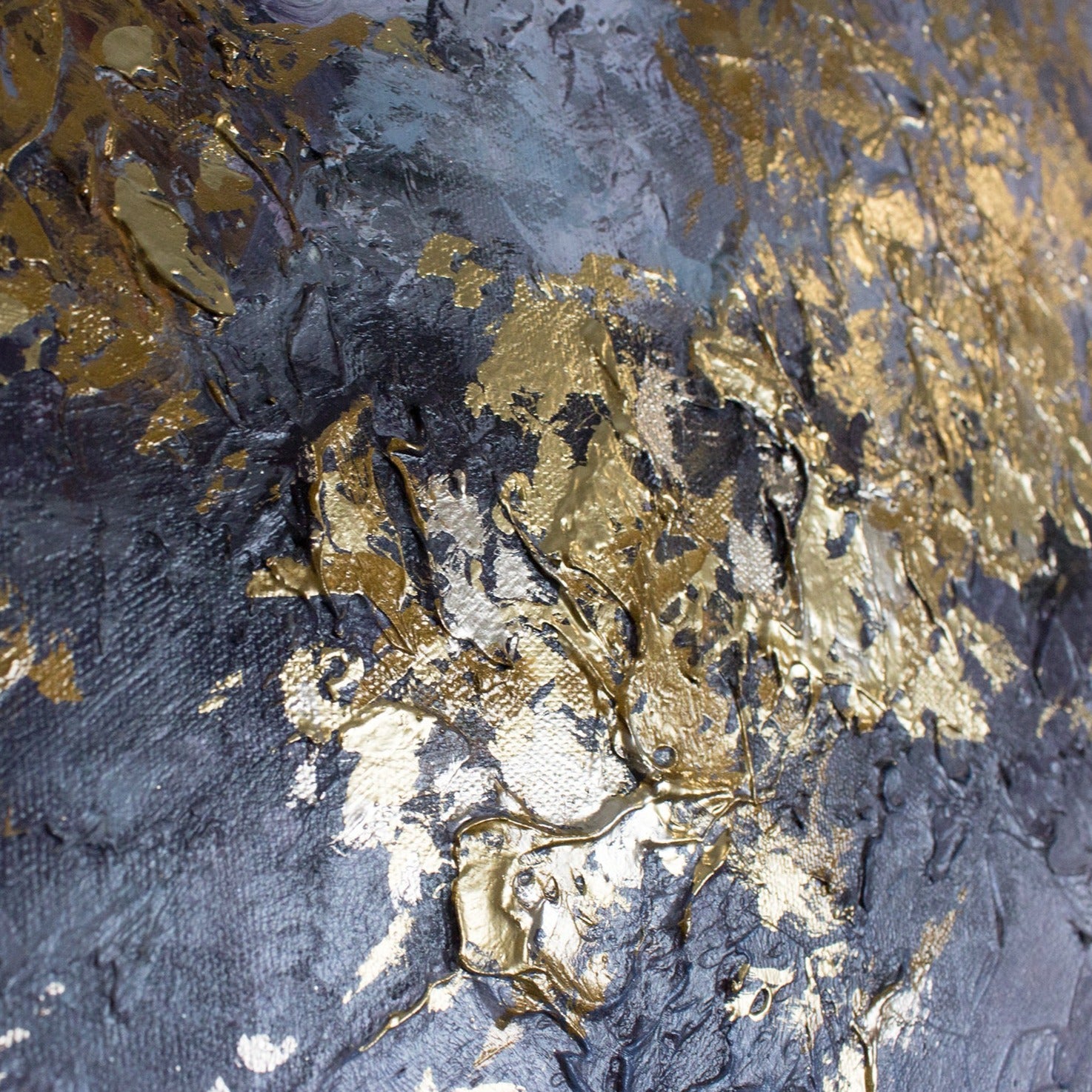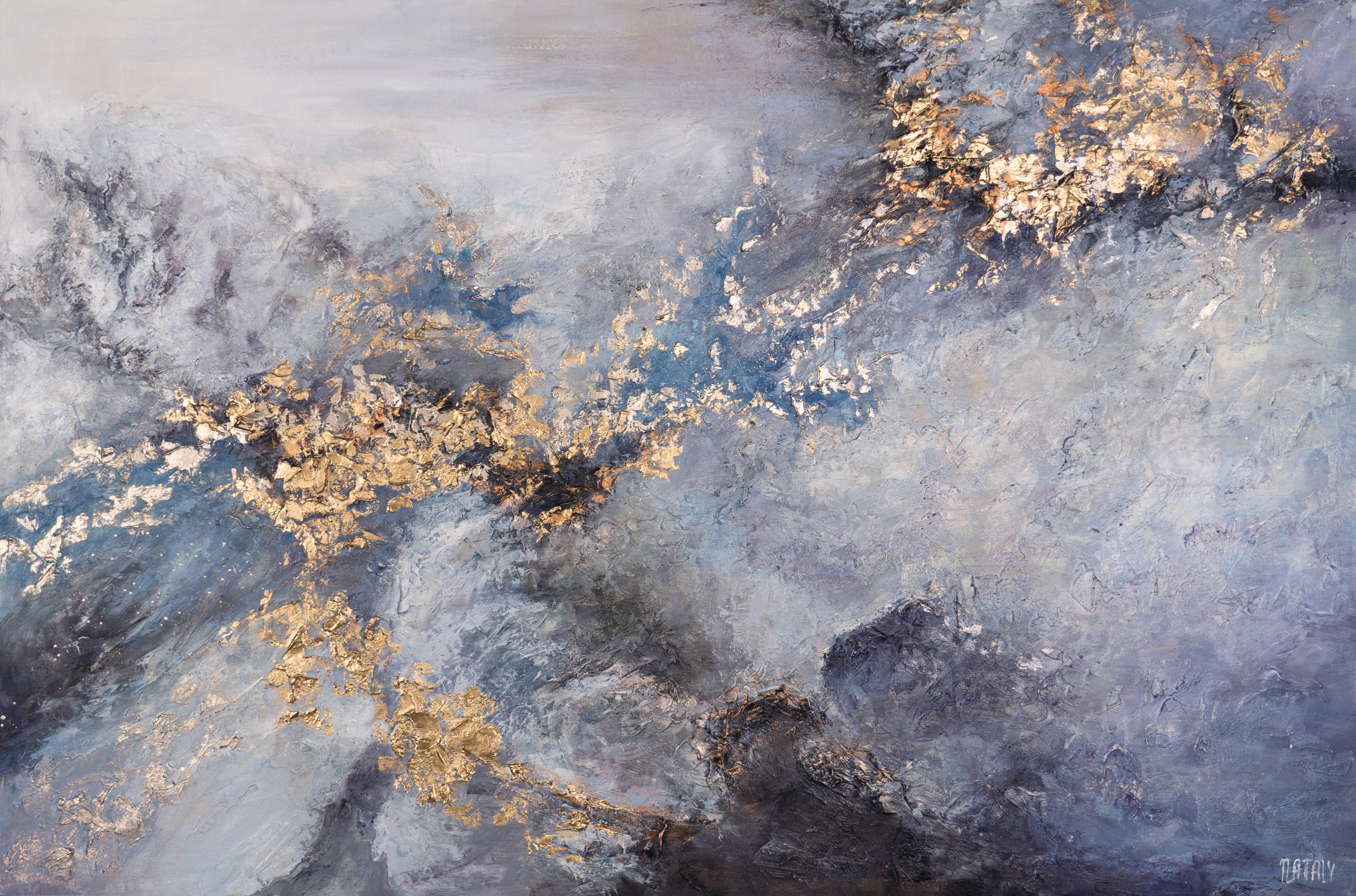 Lærredsbilledet „Renaissance-Tid“ præsenterer en fascinerende komposition i dybe blå- og guldtoner, som gennem håndmalet, struktureret akrylteknik udstråler levende dybde og eksklusiv elegance. Den harmoniske farvepalet og de kraftfulde teksturer skaber en dynamisk, men samtidig beroligende atmosfære, der bliver blikfang i ethvert moderne interiør.