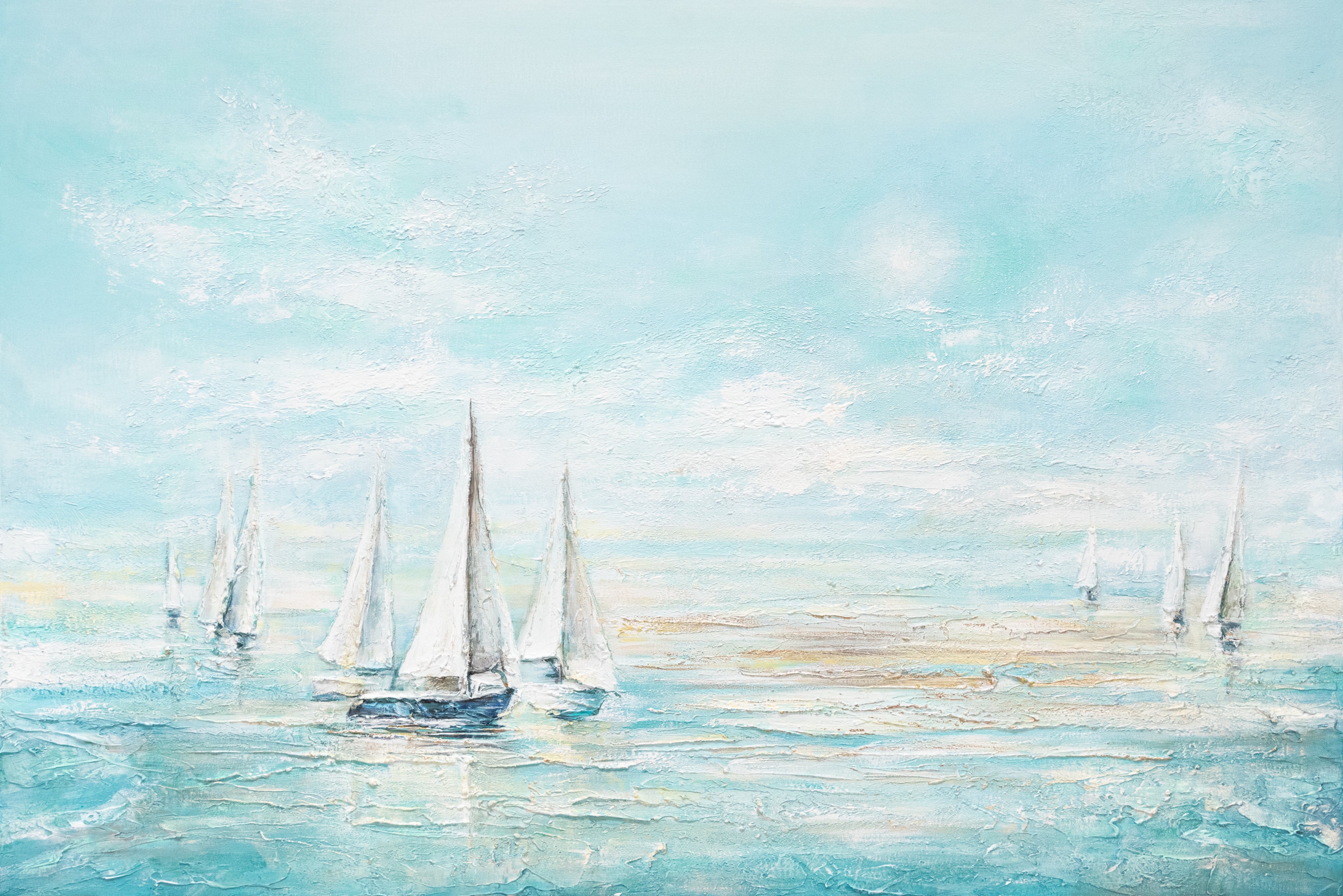 Dyk ned i havets beroligende verden med dette håndmalede akrylmaleri. Det viser en rolig sejlscene i sarte, harmoniske farver, der skaber en afslappet og fredfyldt atmosfære i ethvert rum. Dette kunstværk er 100 % håndlavet og præsenteres omhyggeligt i en stilfuld ramme, der fuldender værkets æstetik.