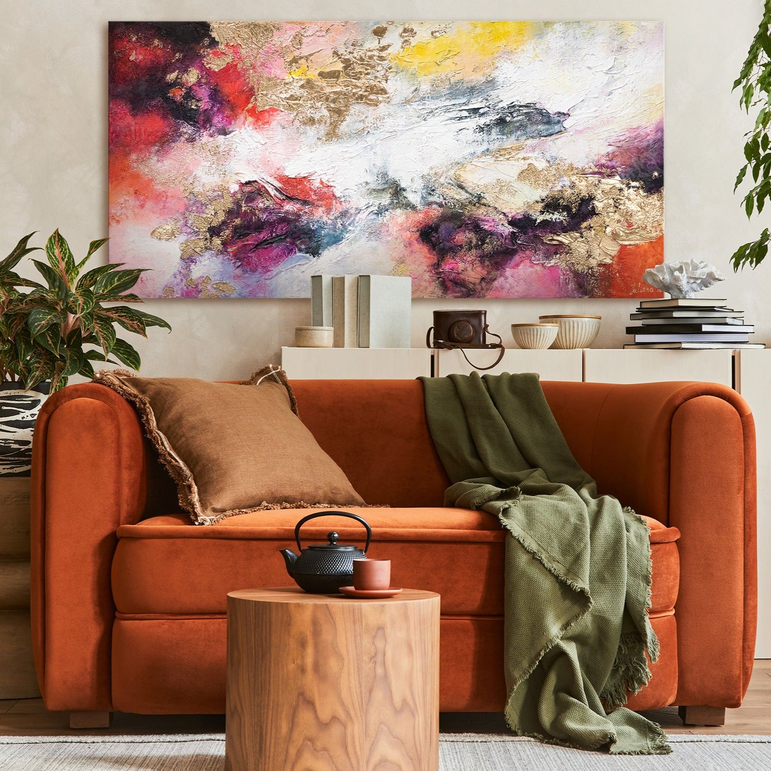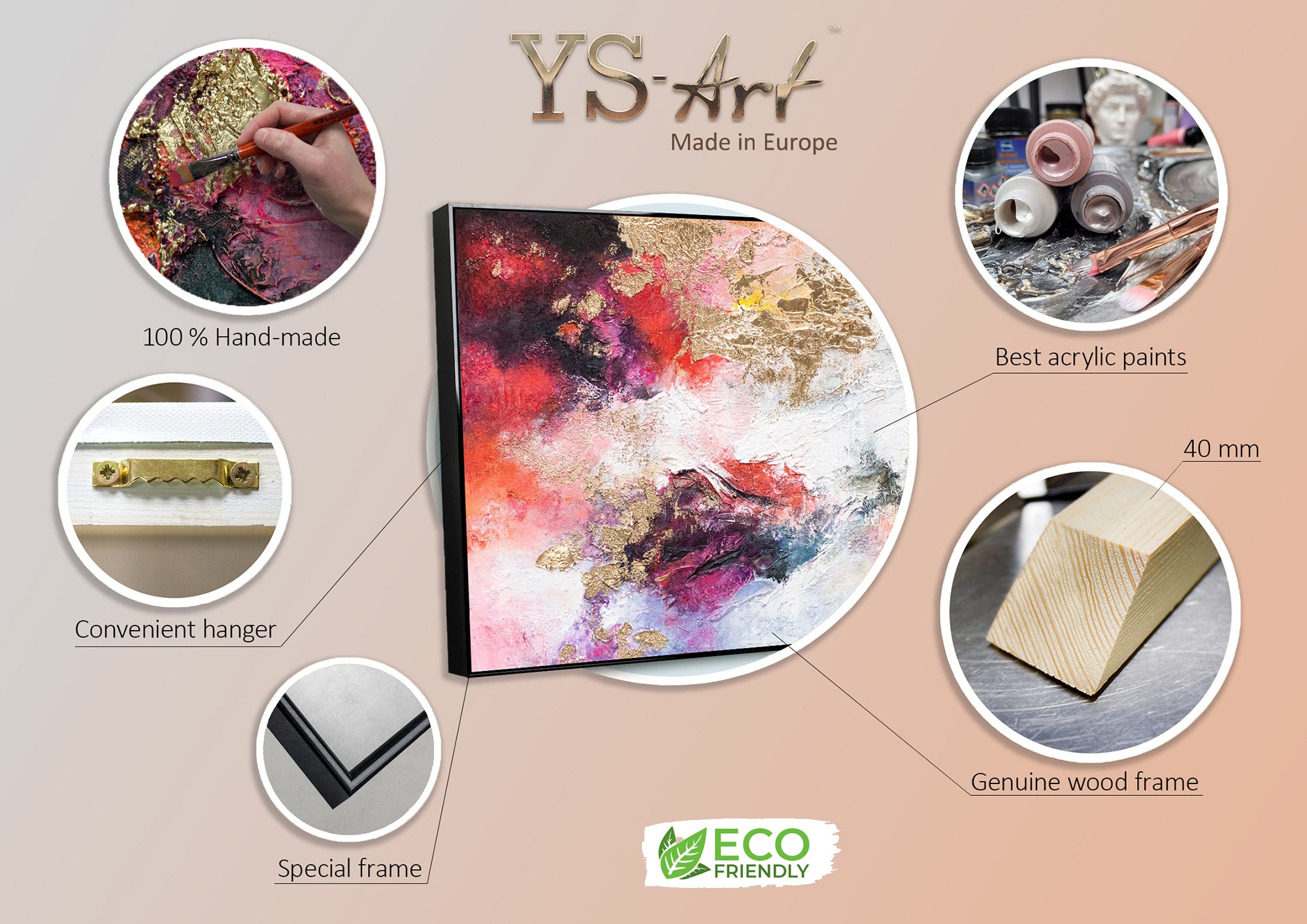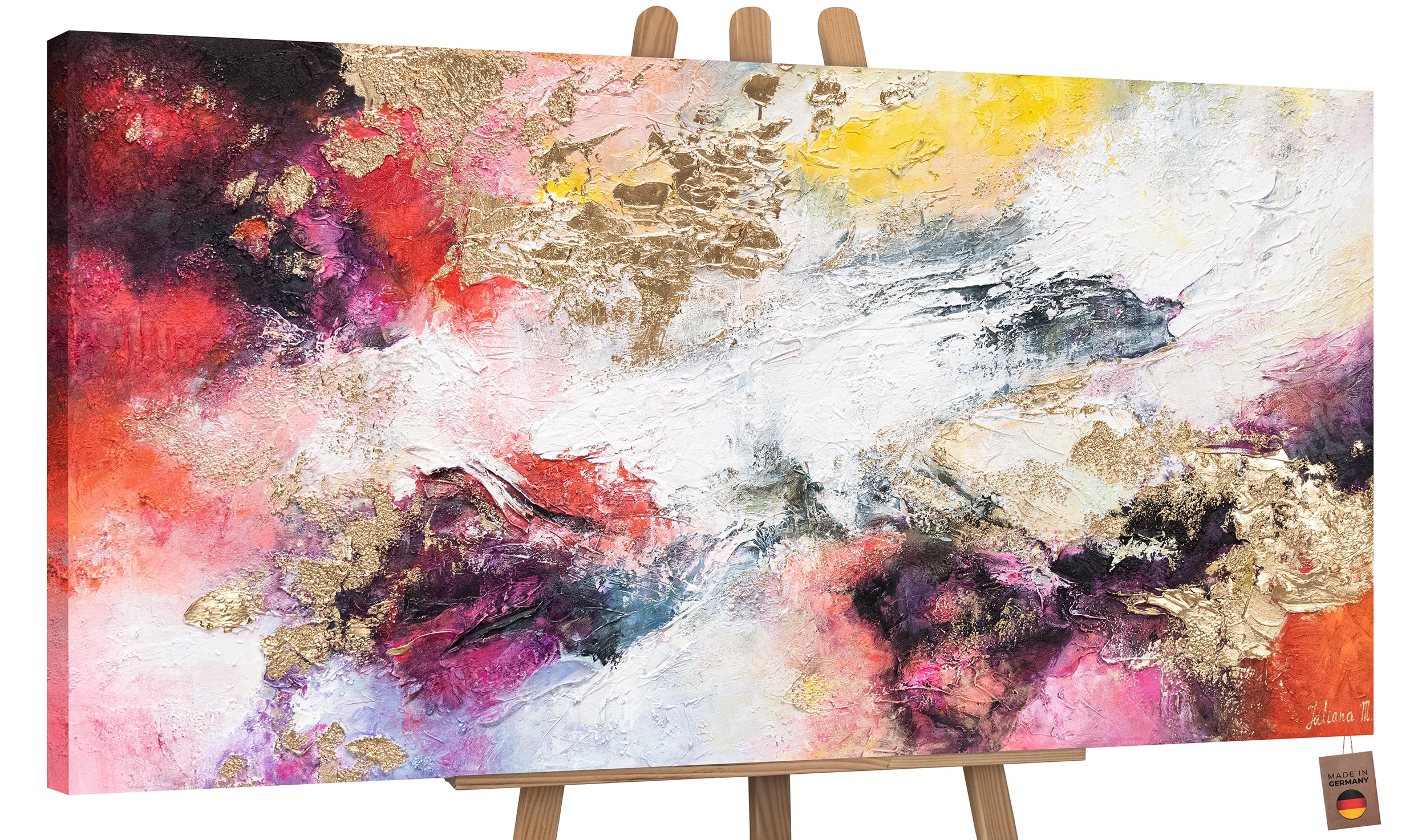 Oplev den fascinerende verden af abstrakt kunst med dette håndmalede akrylbillede på lærred. De strålende farver og dynamiske former skaber en imponerende visuel effekt i ethvert rum. Dette kunstværk kombinerer fineste strukturmaleri-teknik med unikke penselstrøg og er 100 % håndlavet. Kunstværket leveres i en stilfuld ramme og er klar til ophængning. Gratis levering direkte til din dør.