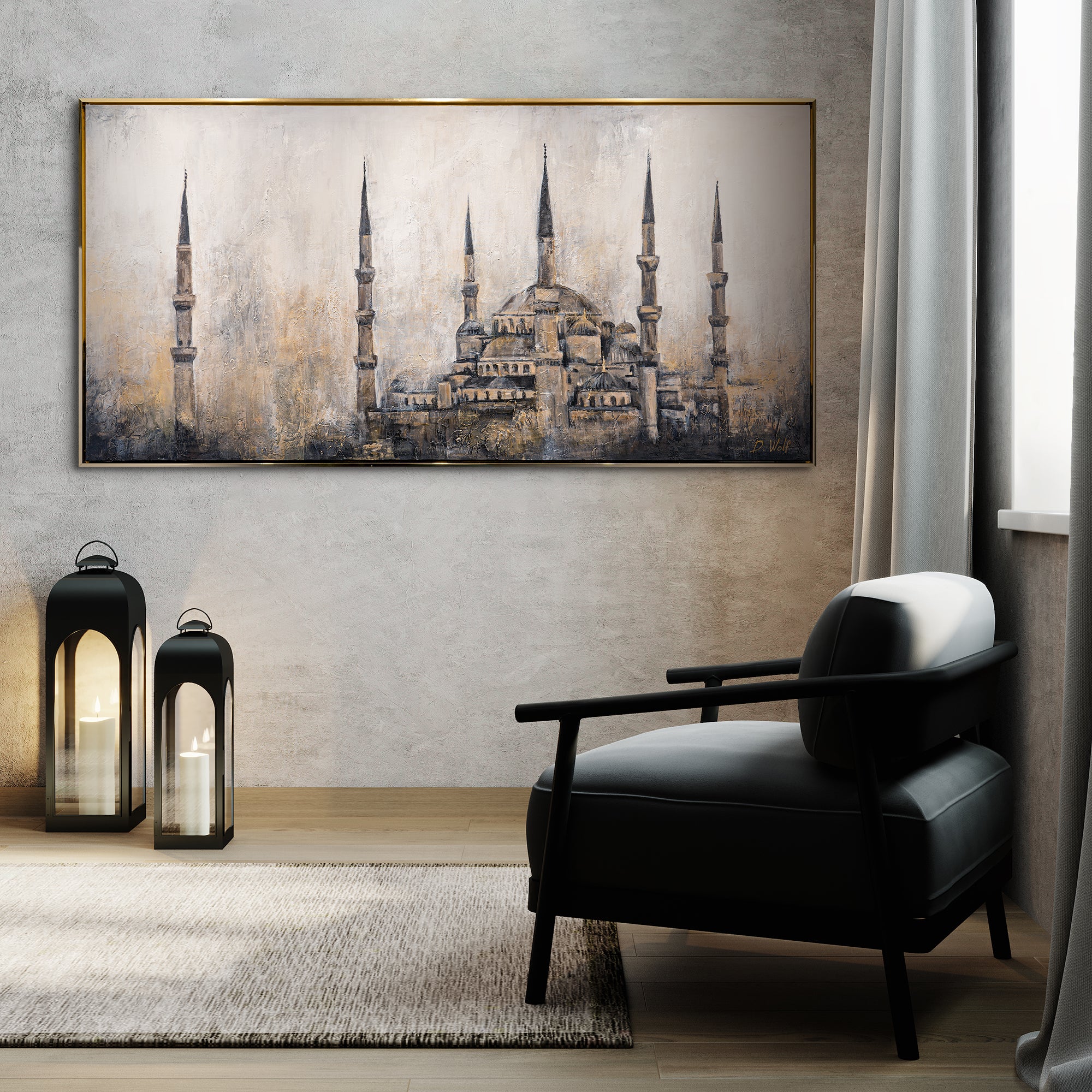 Oplev det fascinerende "Troens Oase" – en kollektion af lysende kunstværker. Lysende malerier, der fortryller dine sanser og bringer glans til dine rum. Ramme – guld.